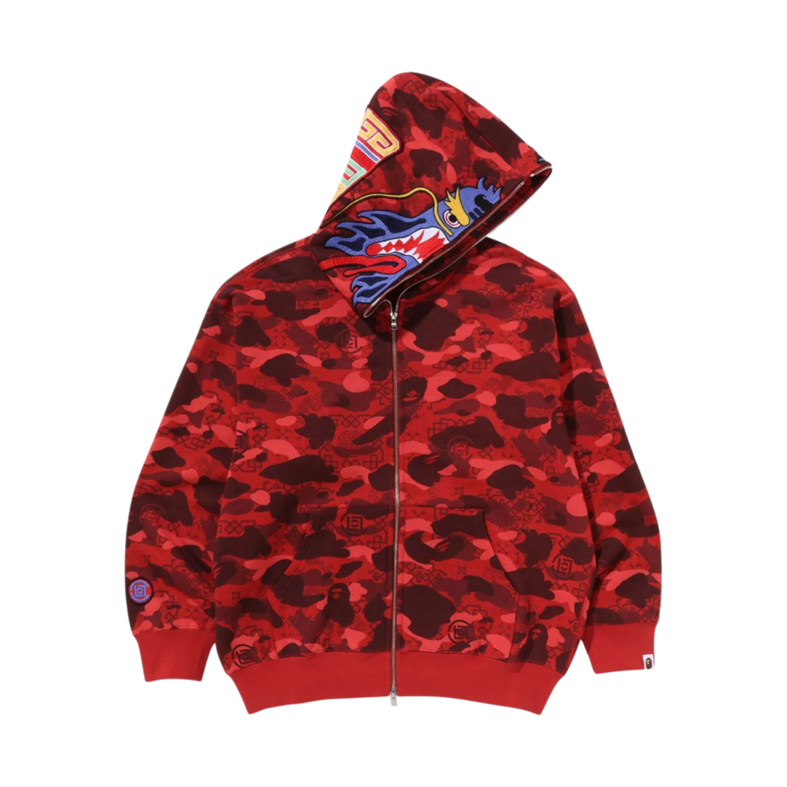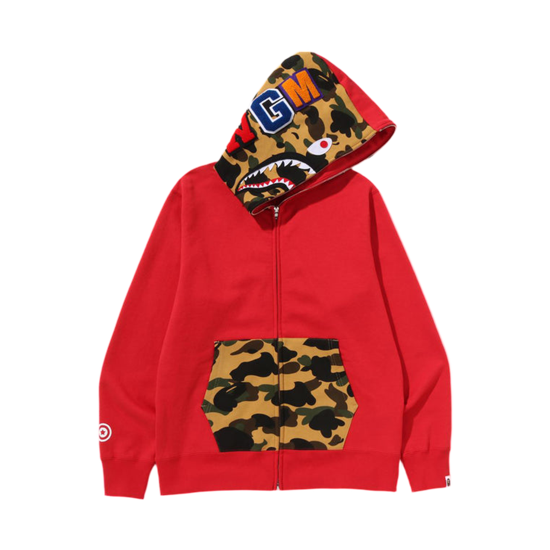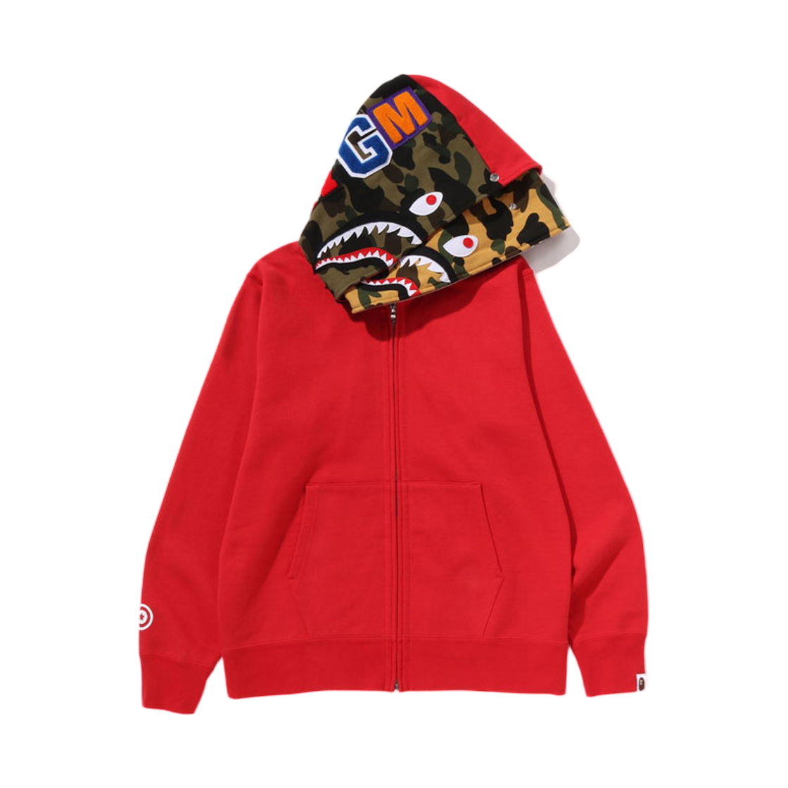 베이프 컬러 카모 샤크 풀 집업 후드 레드