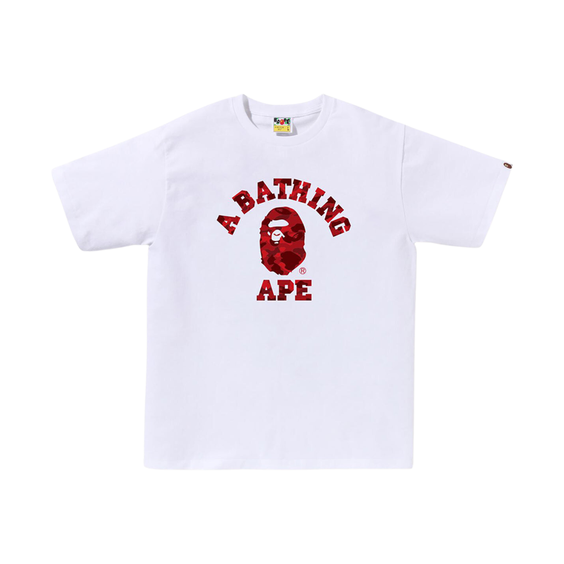베이프 컬러 카모 컬리지 티셔츠 화이트 레드