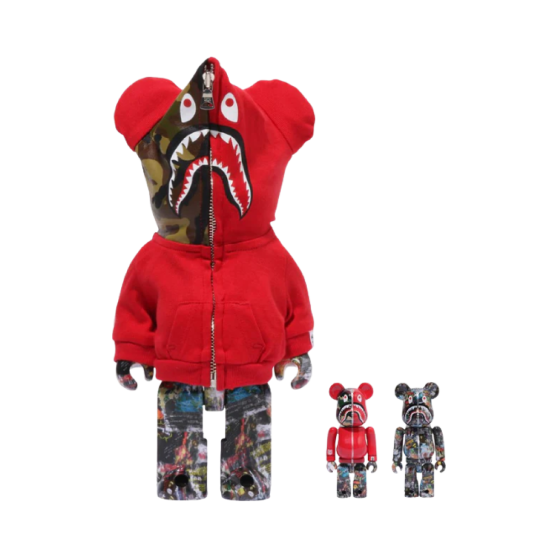 베어브릭 x 베이프 레거시 카모 샤크 100% & 400% 세트 레드