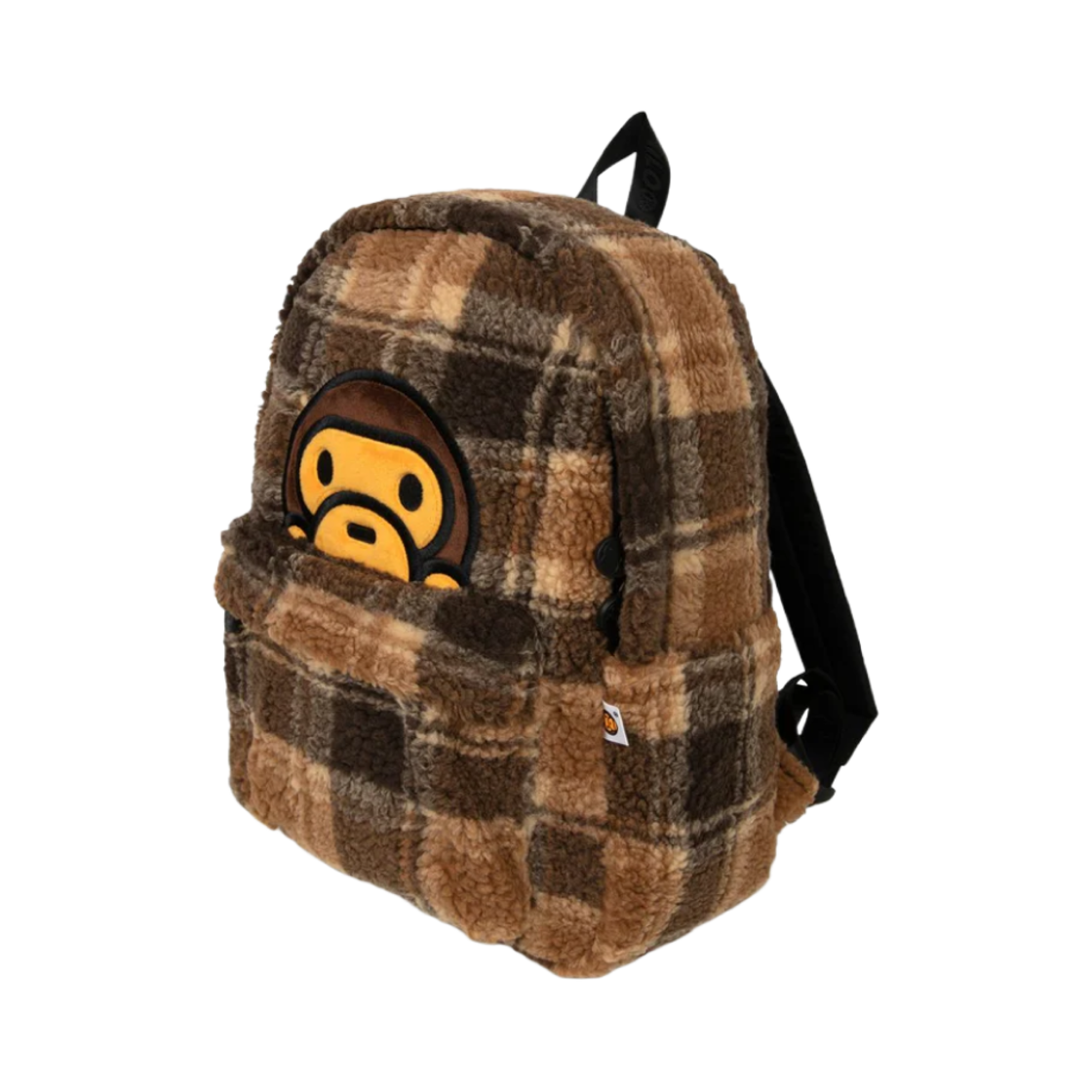 베이프 베이비 마일로 체크 쉐르파 미디움 백팩 베이지 브라운
