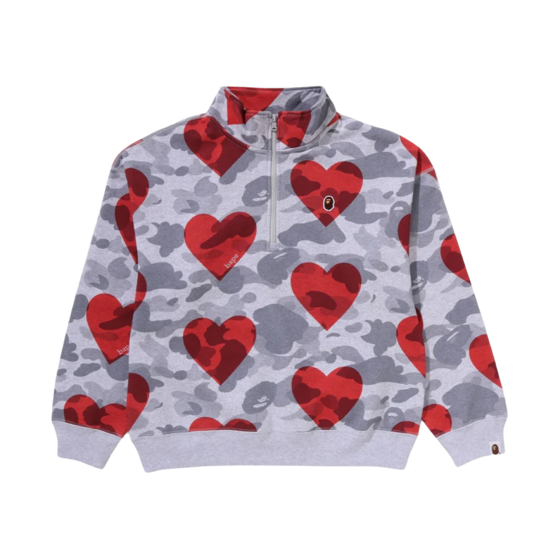 (W) 베이프 아이 러브 베이프 하프 집 스웨트셔츠 그레이