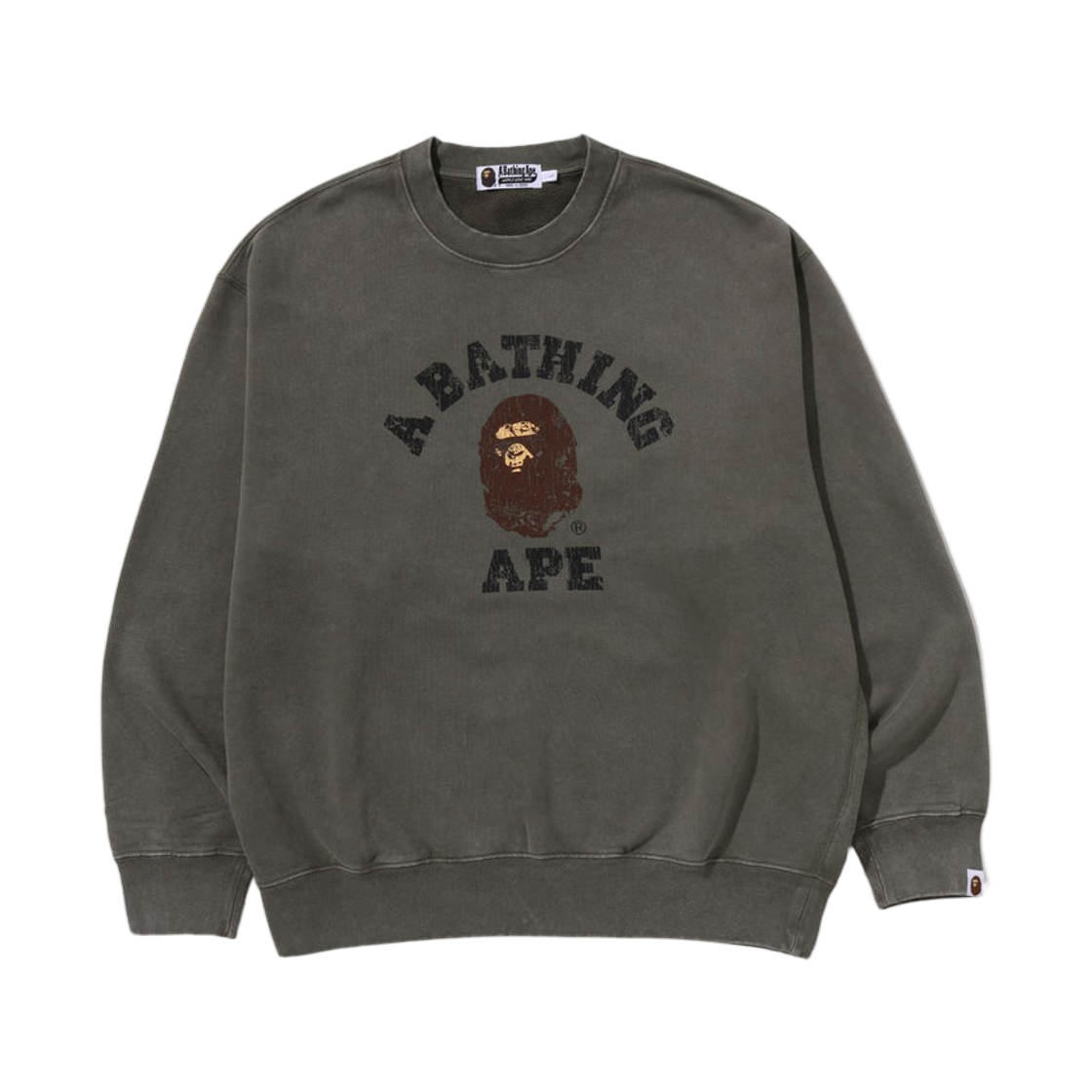 베이프 가먼트 다이 컬리지 릴렉스드 핏 크루넥 스웨트셔츠 올리브드랩