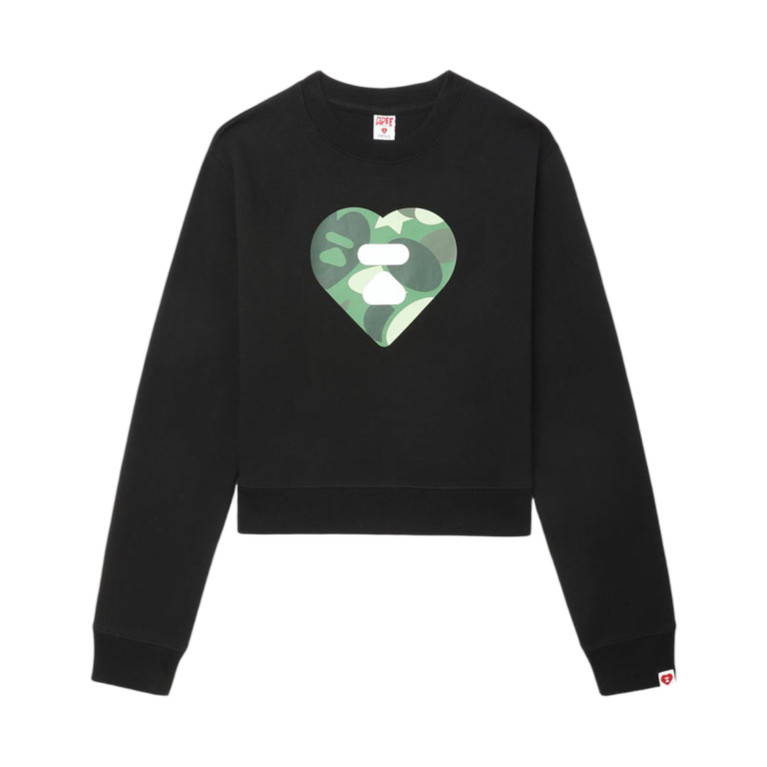 (W) 베이프 카모 하트 크롭 스웨트셔츠 블랙
