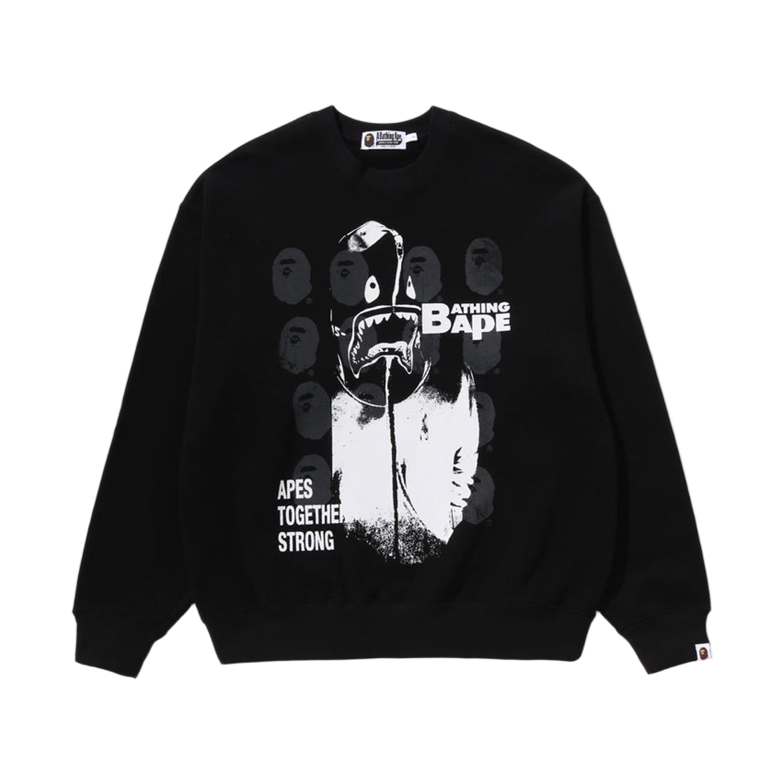 베이프 ABC 카모 에이프 헤드 릴렉스드 핏 크루넥 스웨트셔츠 블랙