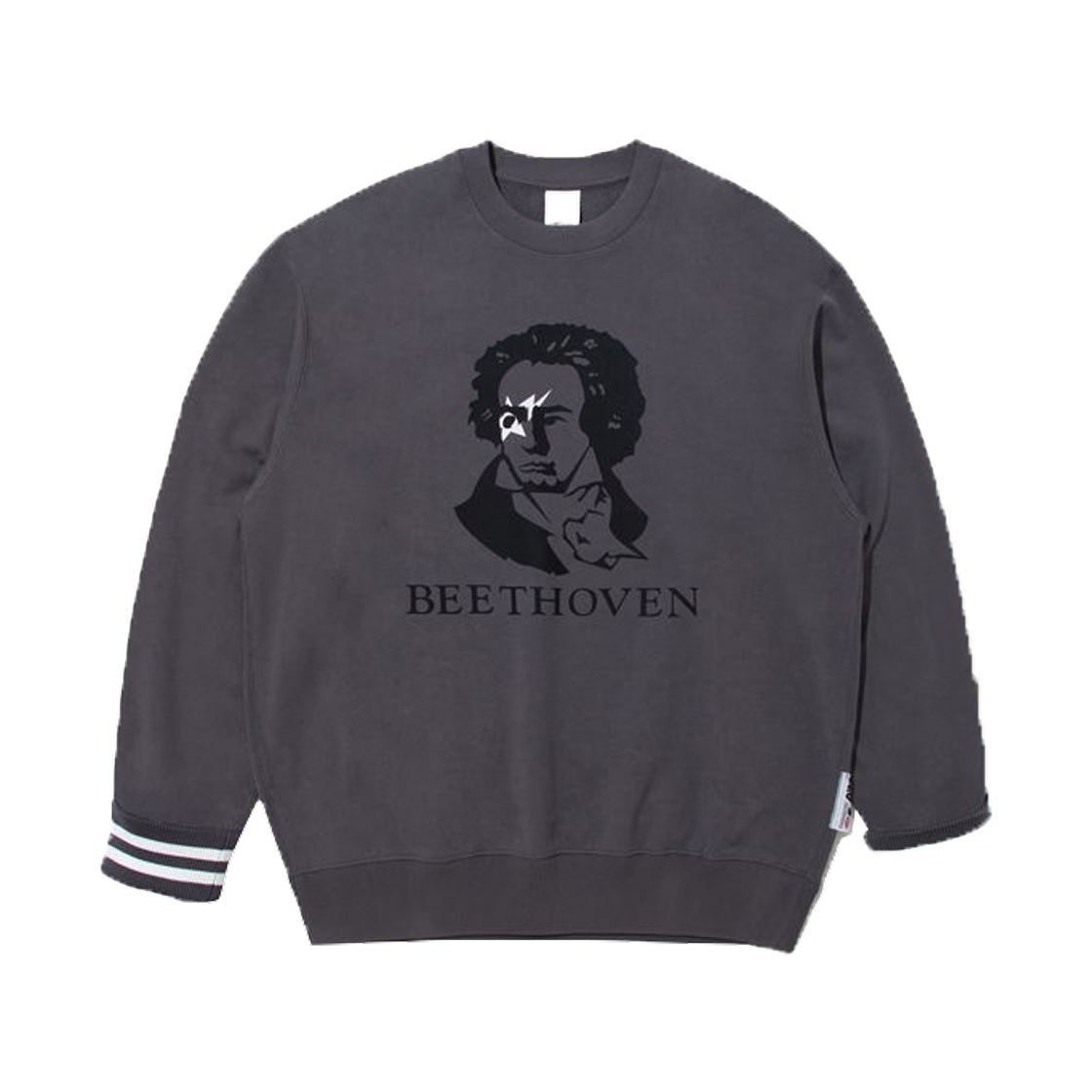 베이프 가먼트 다이 컬리지 릴렉스드 핏 크루넥 스웨트셔츠 차콜