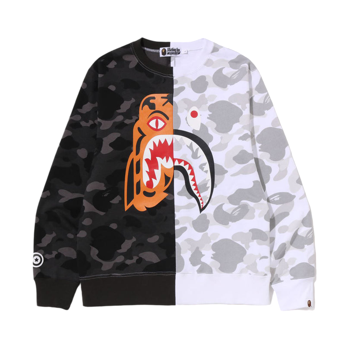 베이프 컬러 카모 타이거 샤크 크루넥 스웨트셔츠 블랙
