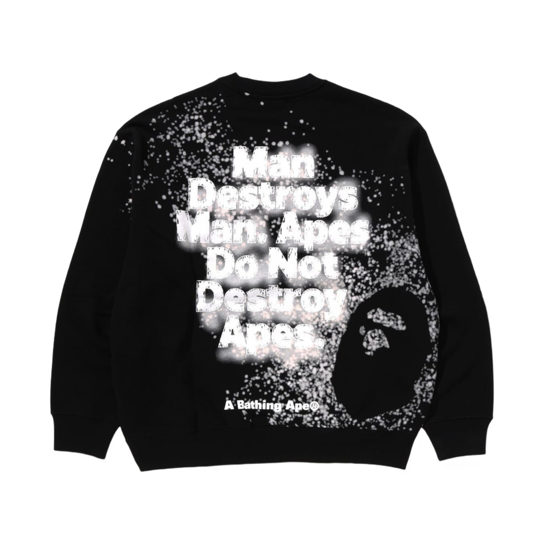 베이프 스프레이 프린트 로고 릴렉스드 핏 크루넥 스웨트셔츠 블랙
