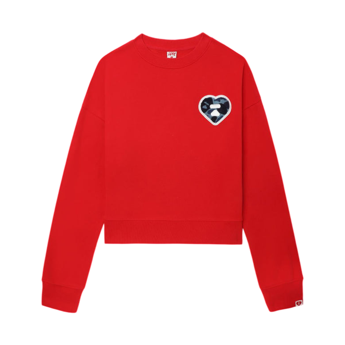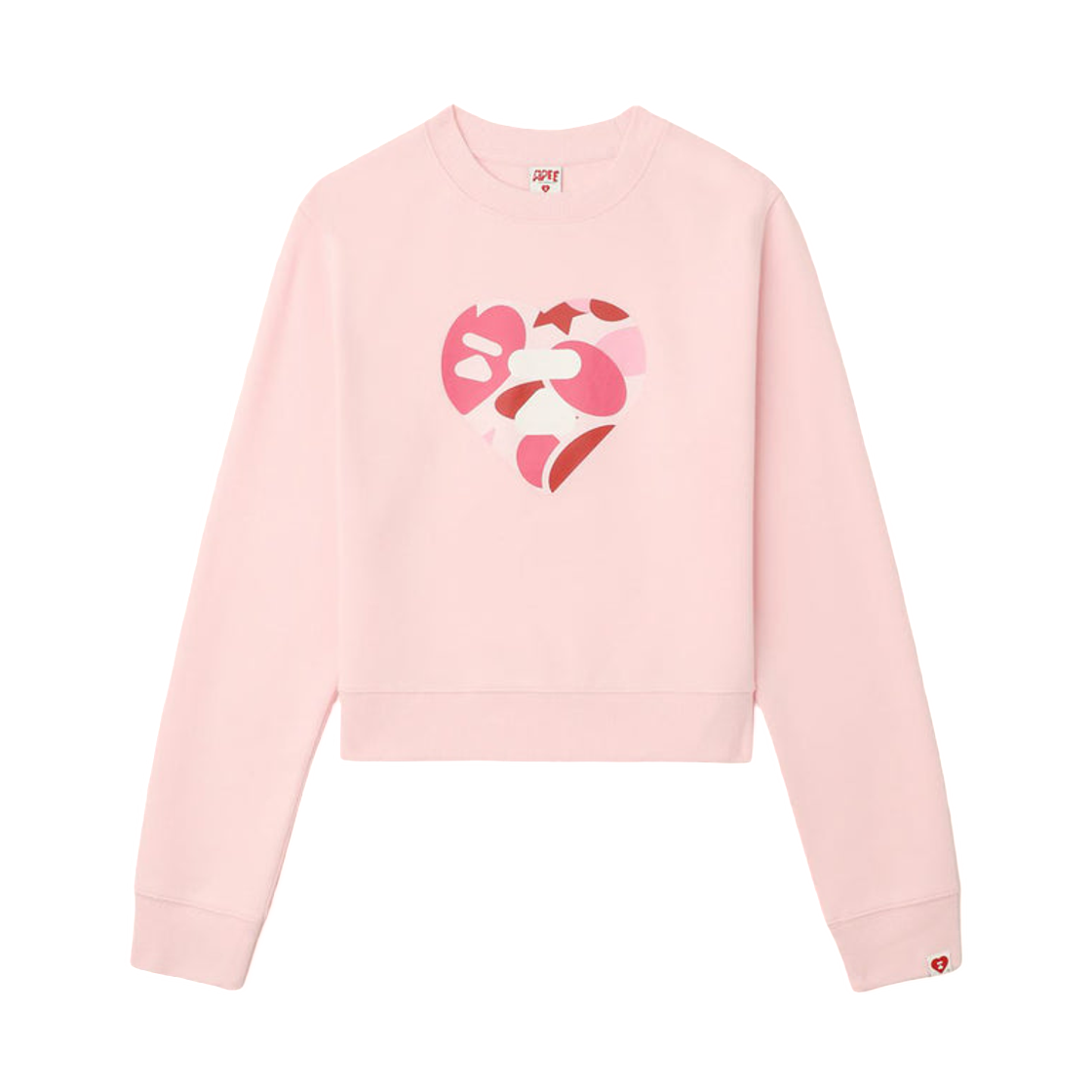 (W) 베이프 카모 하트 크롭 스웨트셔츠 핑크