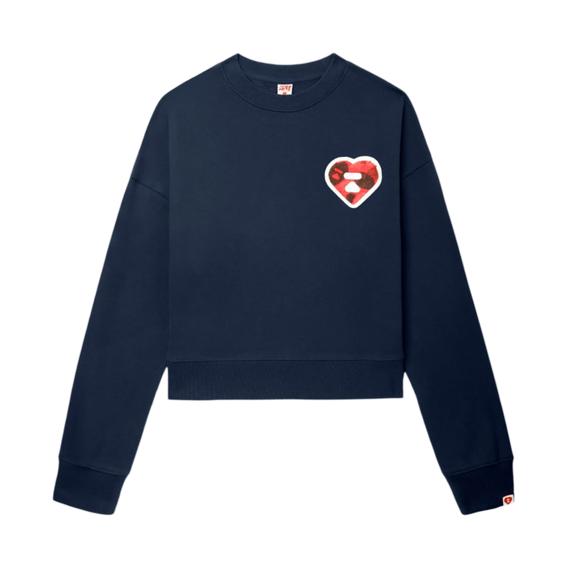 (W) 베이프 카모 하트 크롭 스웨트셔츠 블랙