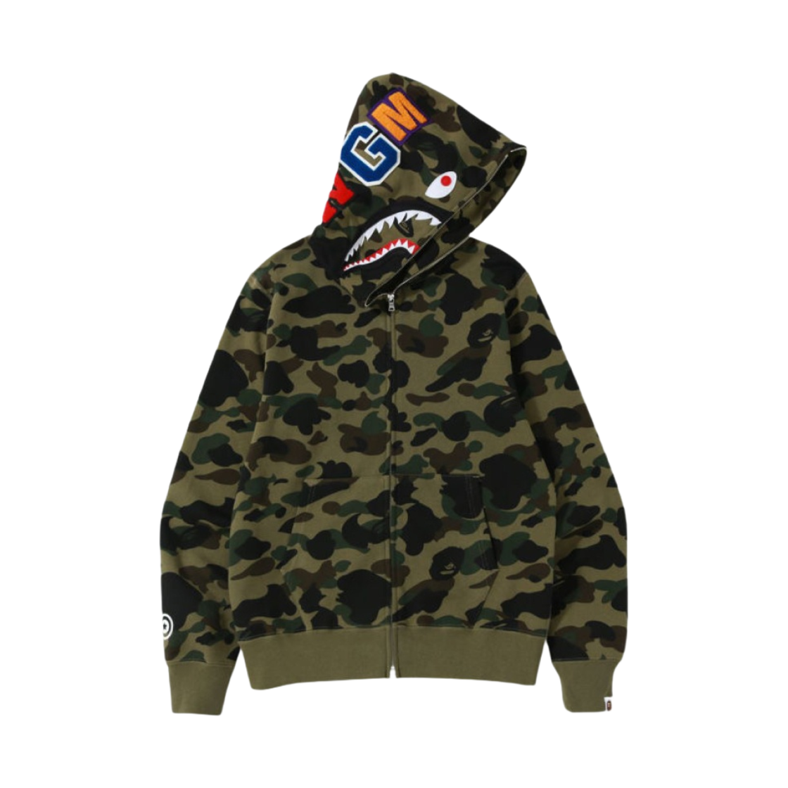 베이프 퍼스트 카모 크로쉐 샤크 풀 집 후드 그린