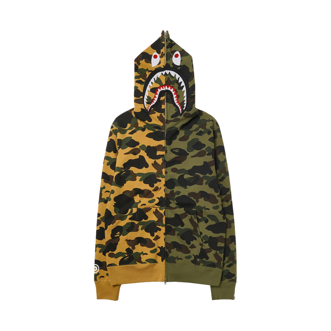 베이프 퍼스트 카모 샤크 풀 집 더블 후드 옐로우