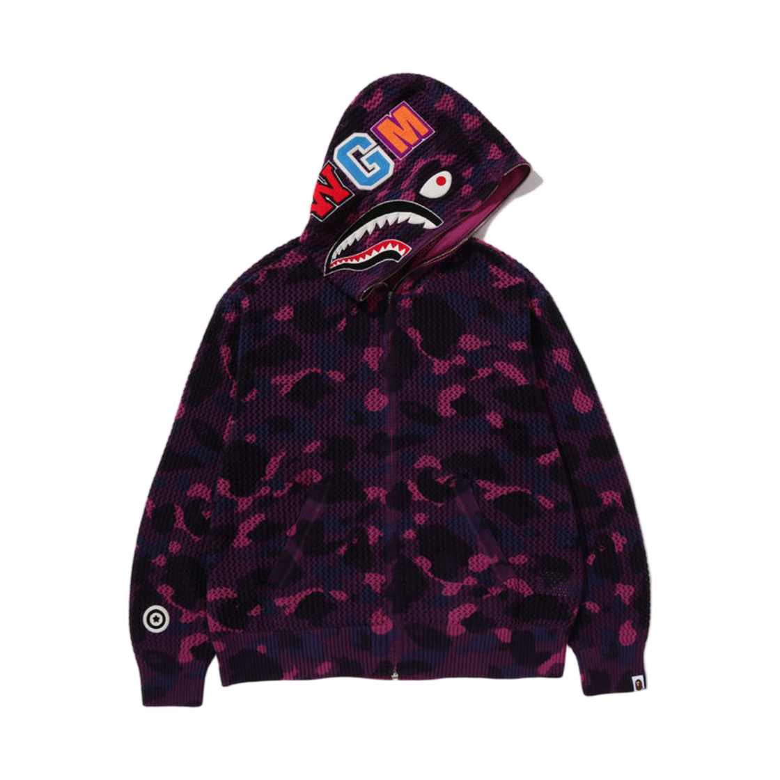 베이프 컬러 카모 크로쉐 릴렉스드 핏 샤크 풀 집 후드 퍼플