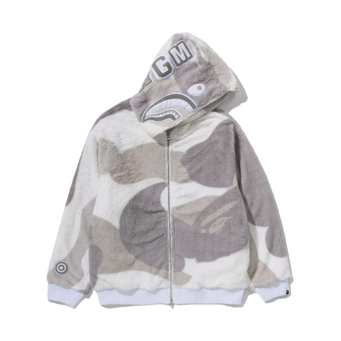 베이프 컬러 카모 샤크 풀 집 쉐르파 자켓 화이트