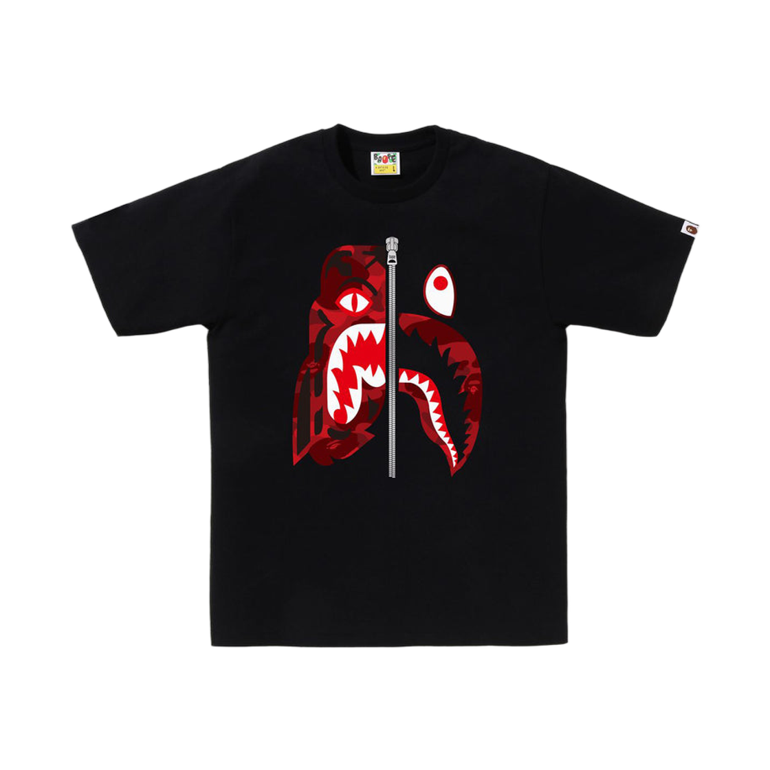 베이프 컬러 카모 타이거 샤크 티셔츠 블랙 레드