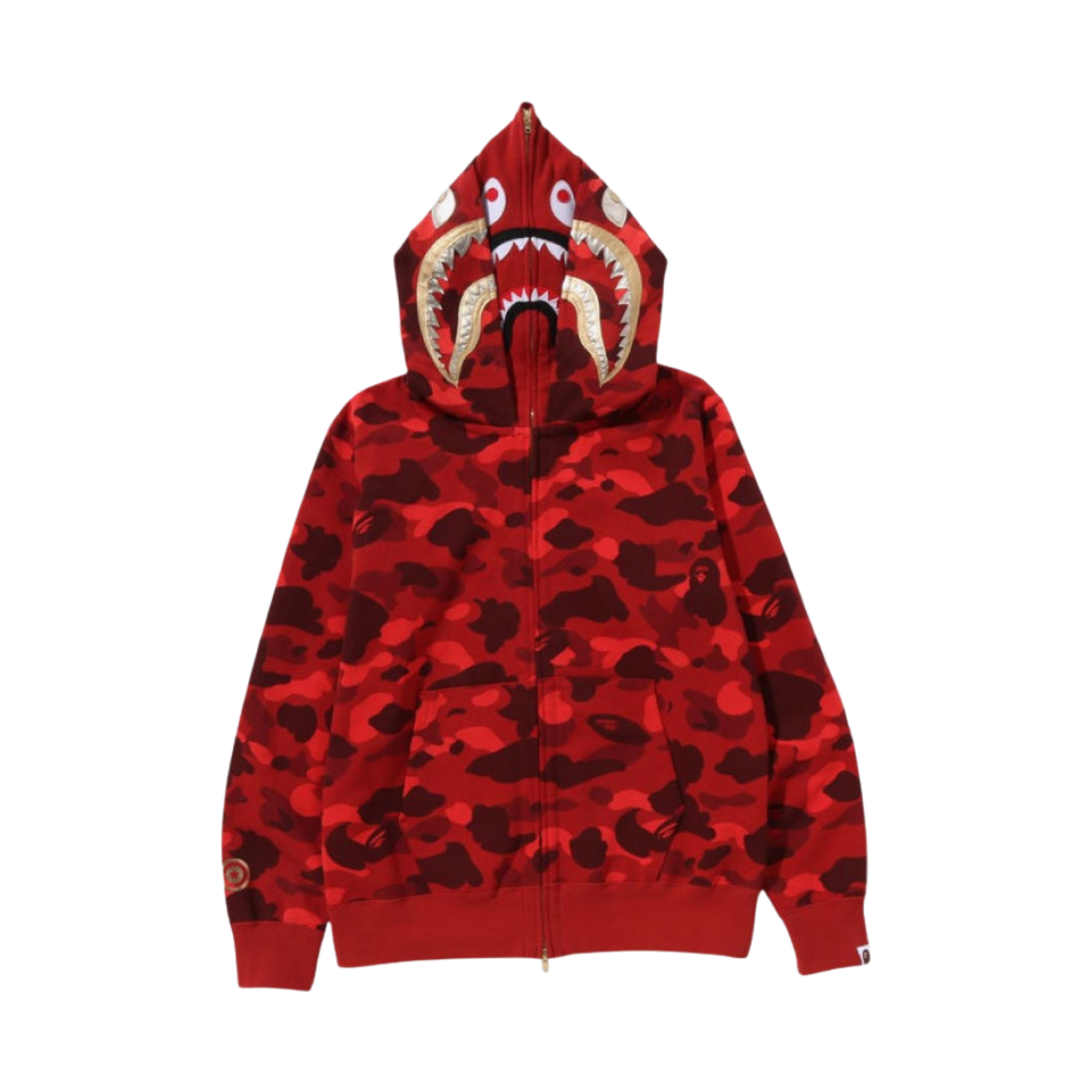 베이프 컬러 카모 더블 샤크 풀 집 후드 브라이트 레드