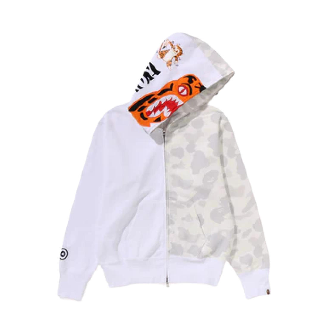 베이프 시티 카모 타이거 샤크 풀 집 후드 화이트