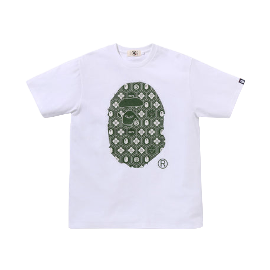 베이프 트래디셔널 재패니즈 패턴 에이프 헤드 티셔츠 화이트 그린