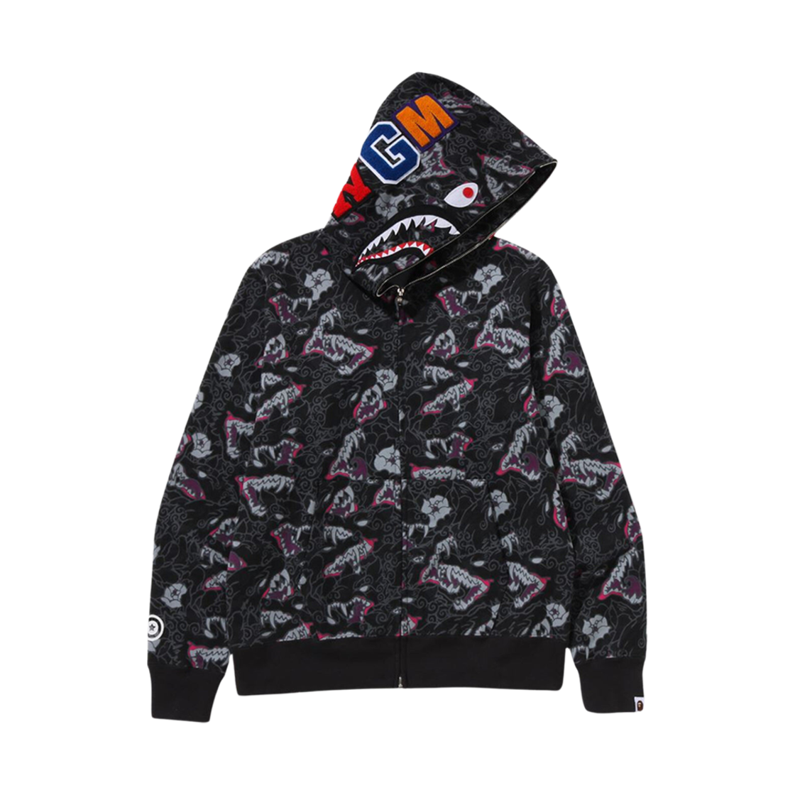 베이프 재패니즈 타투 카모 샤크 Fz 후드 블랙