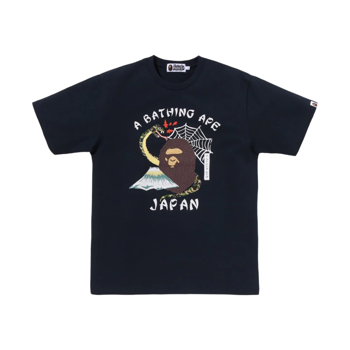 베이프 재패니즈 타투 빅 에이프 헤드 티셔츠 네이비