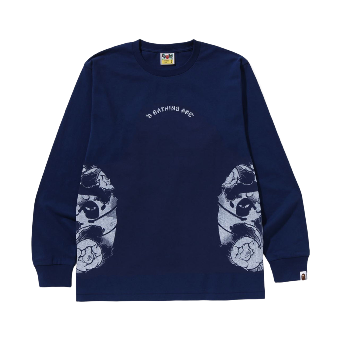 베이프 재패니즈 타투 사이드 빅 에이프 헤드 롱슬리브 티셔츠 네이비