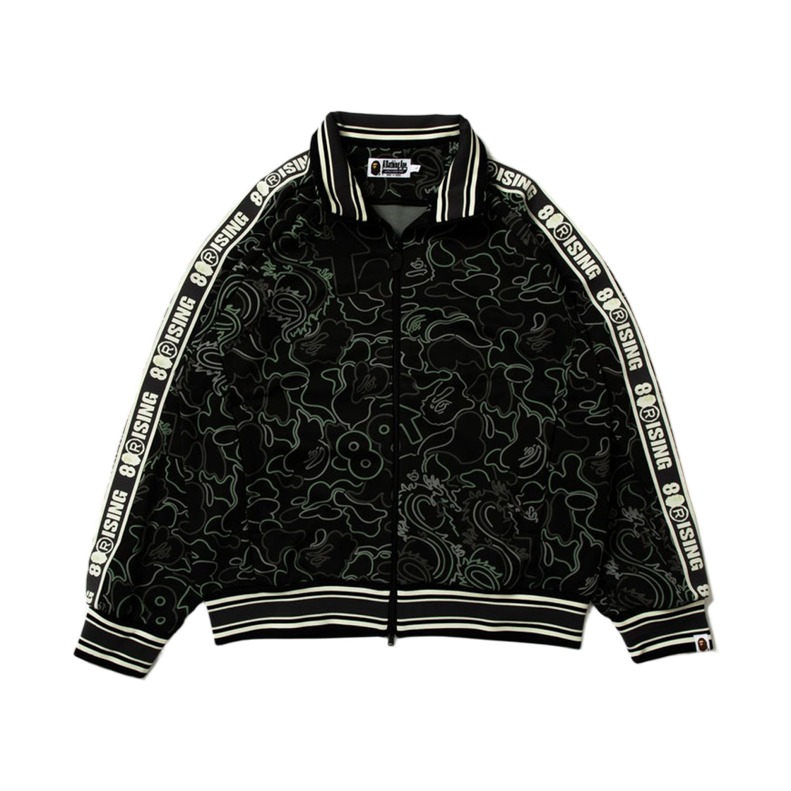 베이프 x 88Rising 글로우 인 더 다크 카모 트랙 자켓 블랙