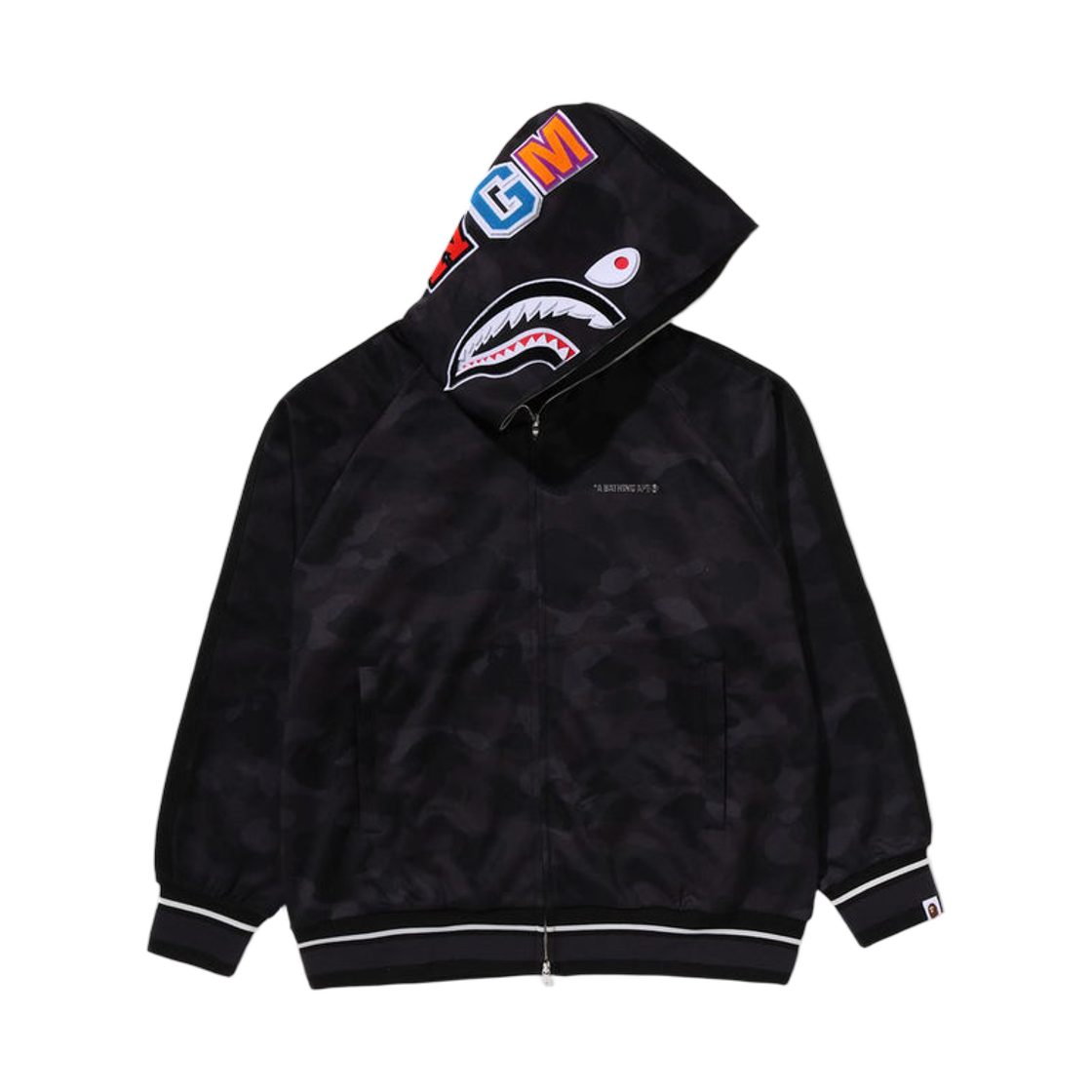 베이프 컬러 카모 샤크 릴렉스드 핏 후드 트랙 자켓 블랙