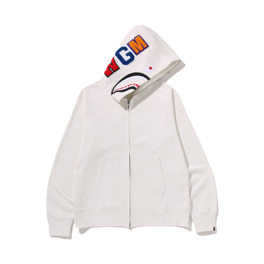 베이프 컬러 카모 샤크 풀 집 쉐르파 자켓 화이트