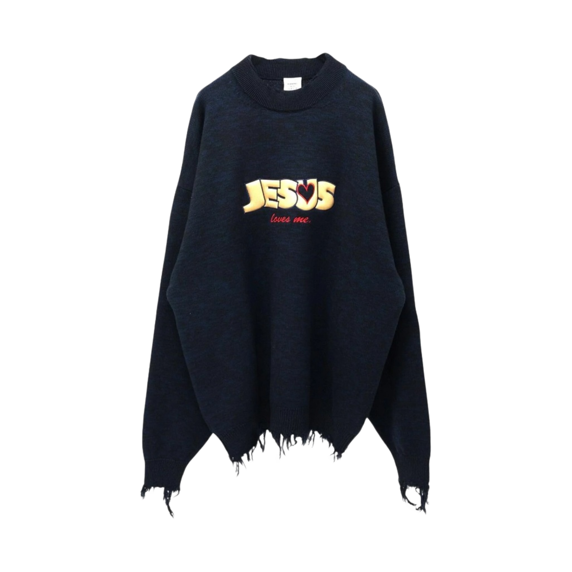 베트멍 지저스 러브스 유 디스트로이드 스웨터 네이비