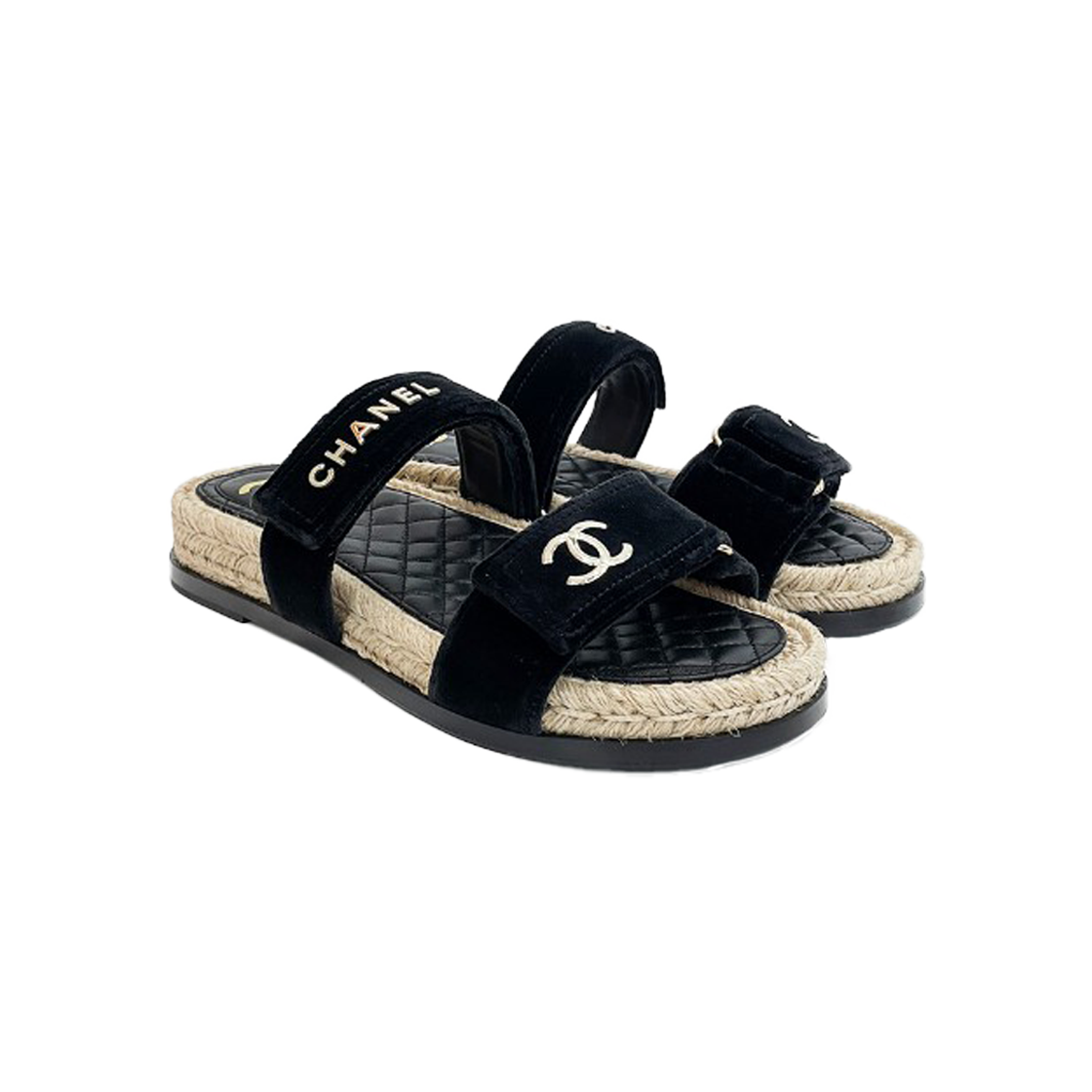 샤넬 20P 벨크로 샌들 38.5 블랙