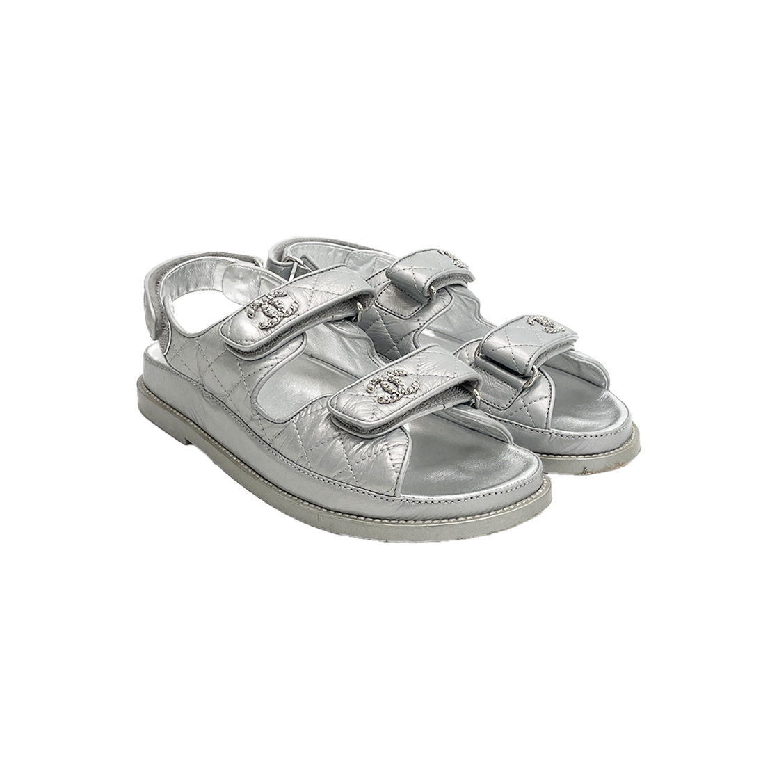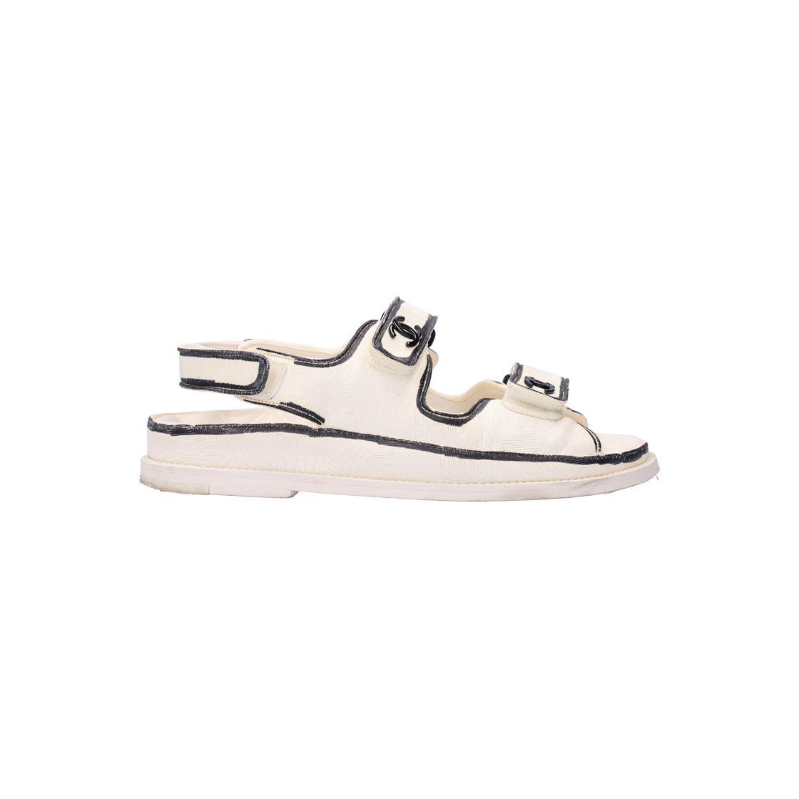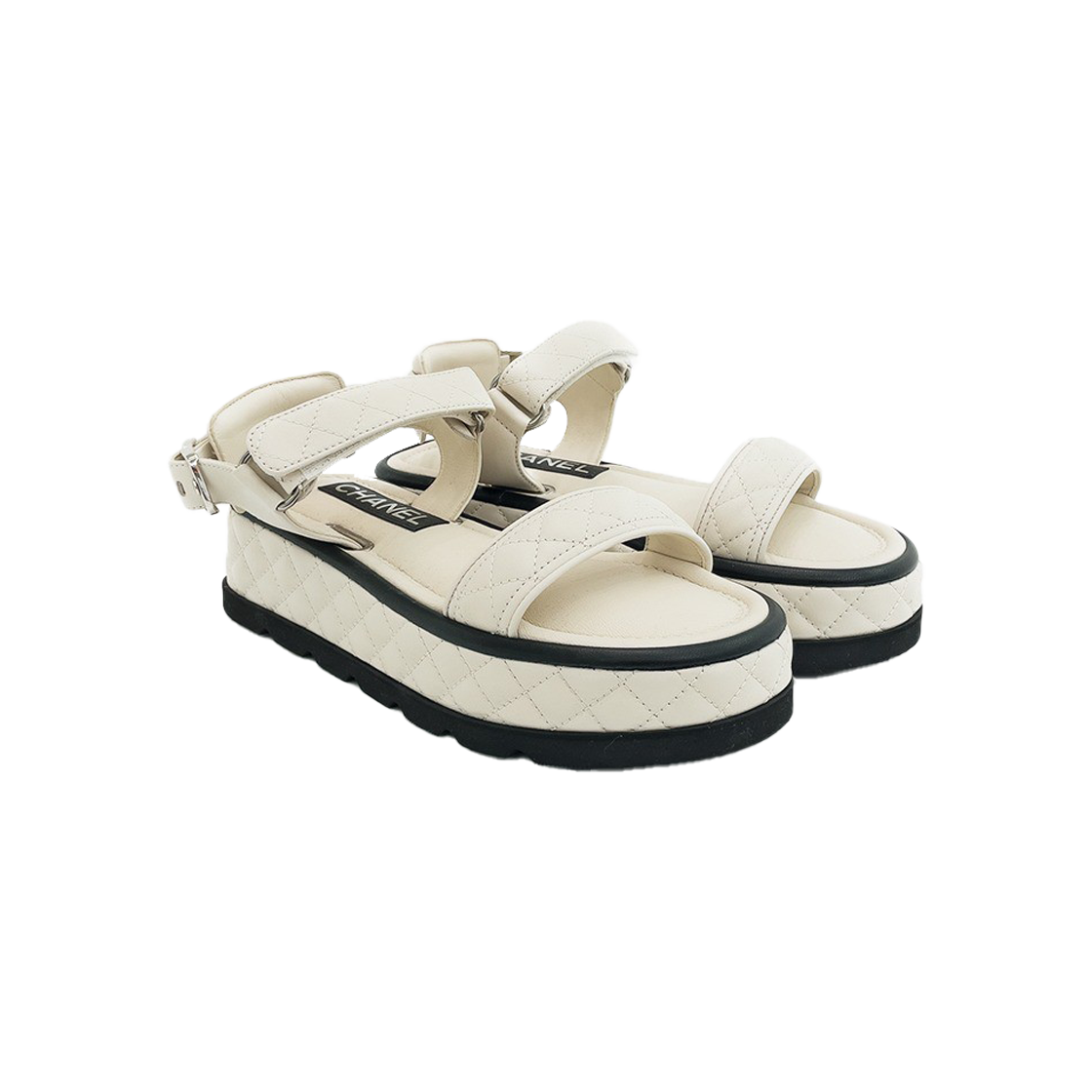 샤넬 퀄팅 벨크로 샌들 37 아이보리/블랙