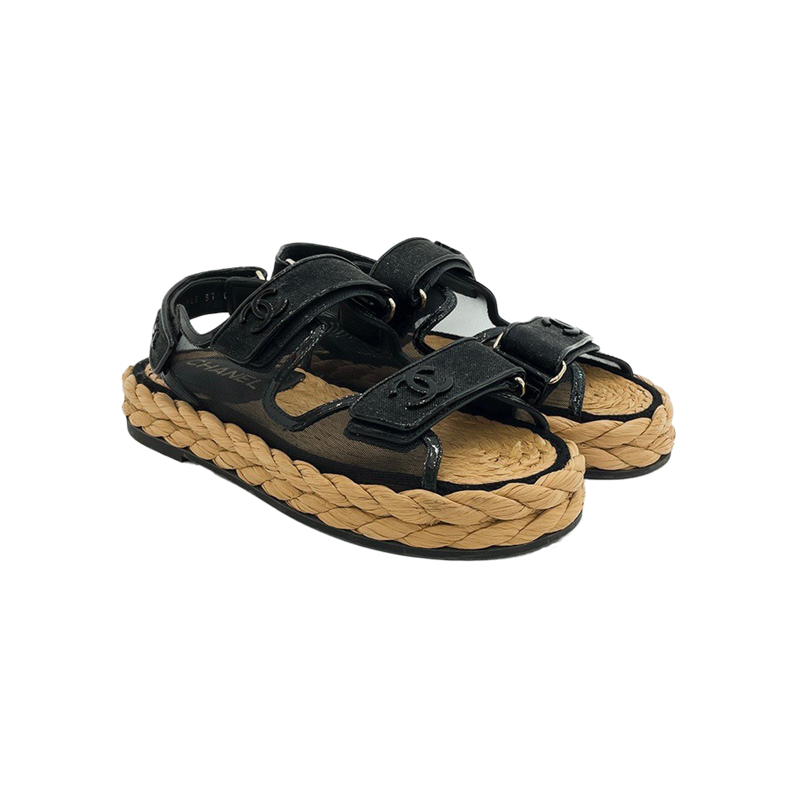 샤넬 메쉬 벨크로 샌들 37 블랙