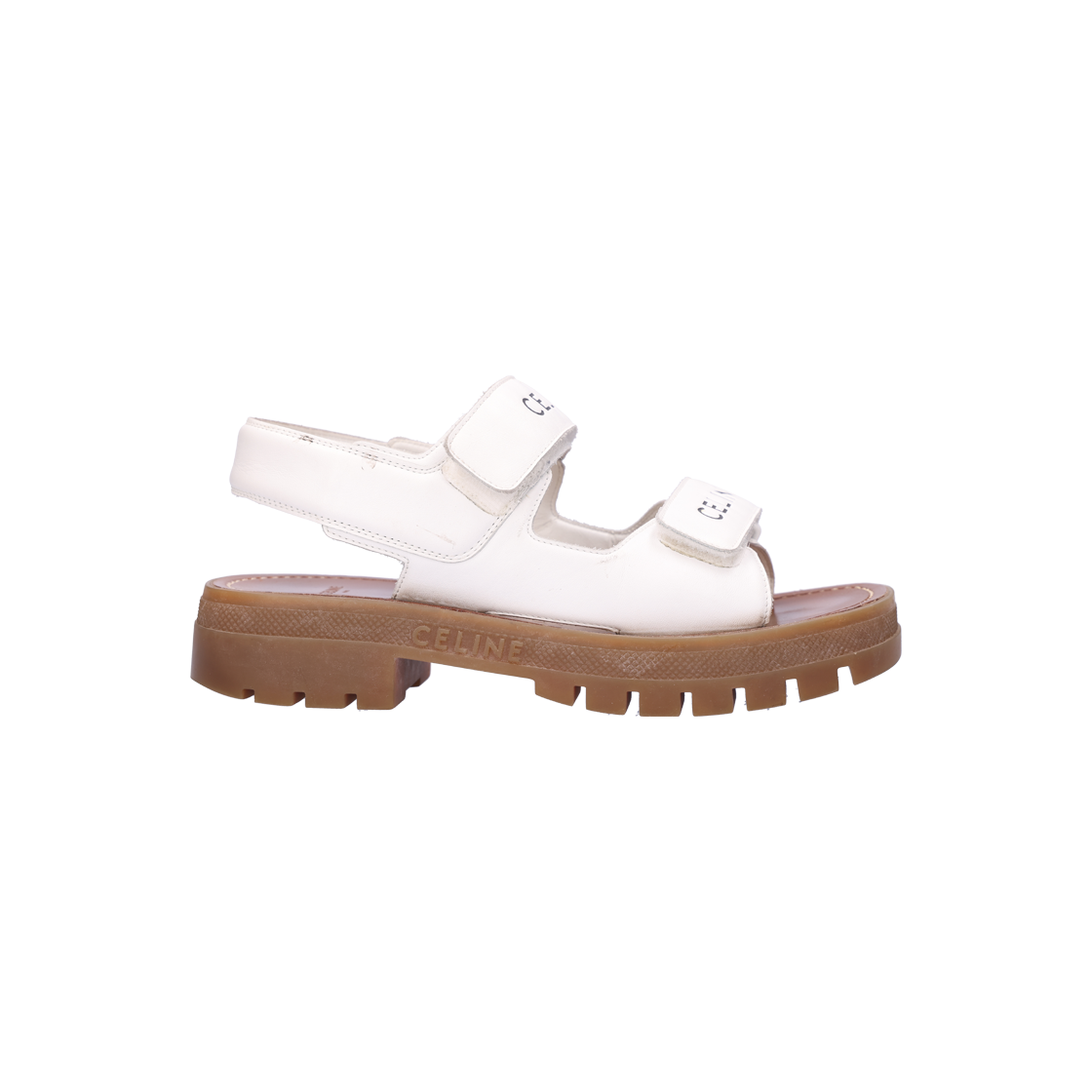 셀린느 345663338C 레오 스크래치 벨크로 샌들 카프스킨 화이트 38
