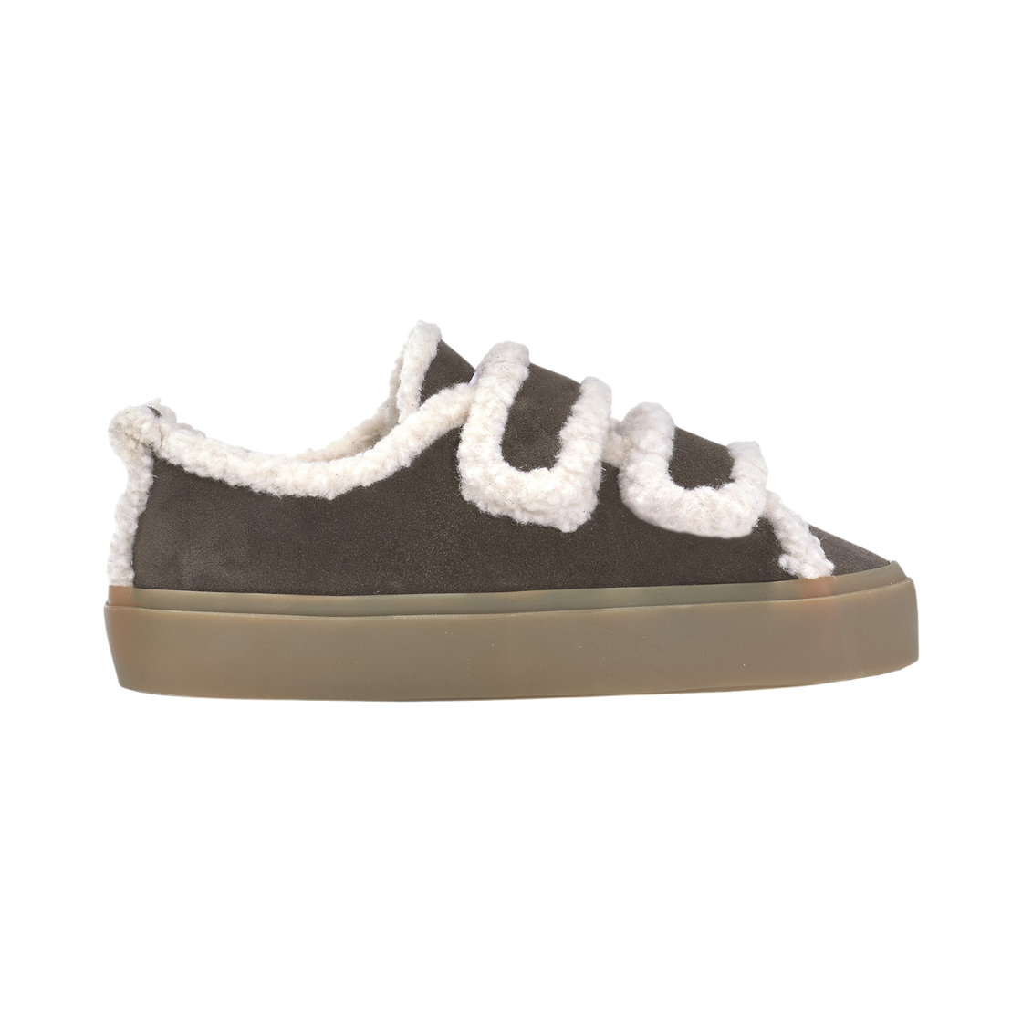 이누이키 여성 진한 브라운 시어링 벨크로 스니커즈