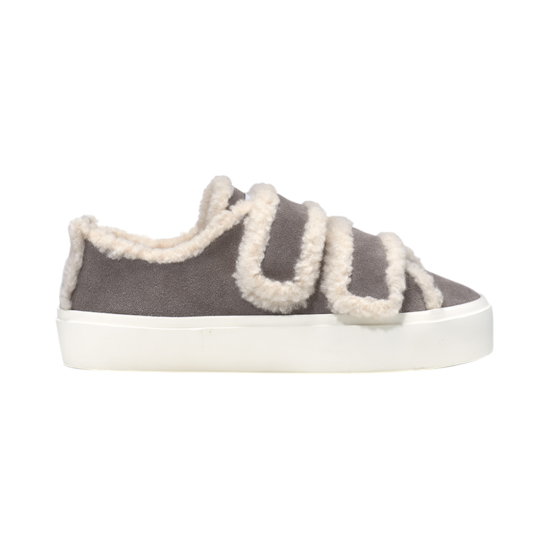 이누이키 여성 그레이 시어링 벨크로 스니커즈
