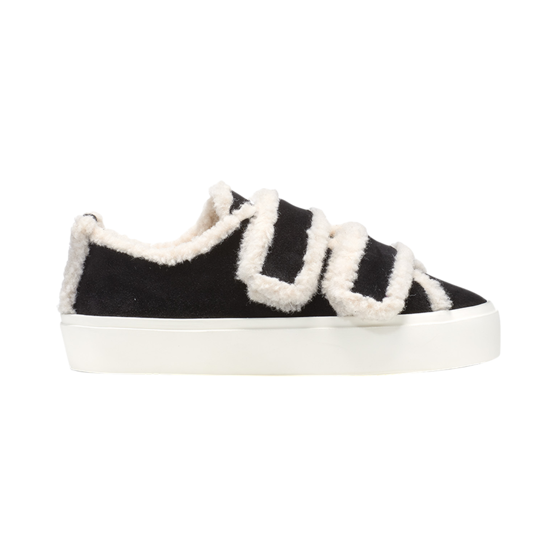 이누이키 여성 블랙 시어링 벨크로 스니커즈