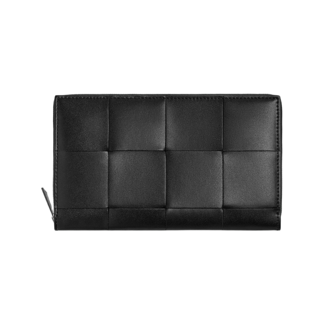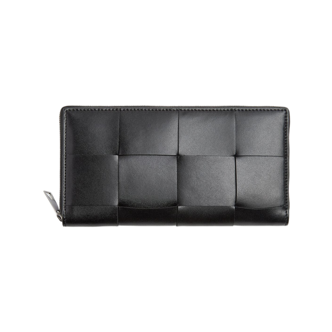 보테가 베네타 인트레치아토 카세트 집 월렛 블랙
