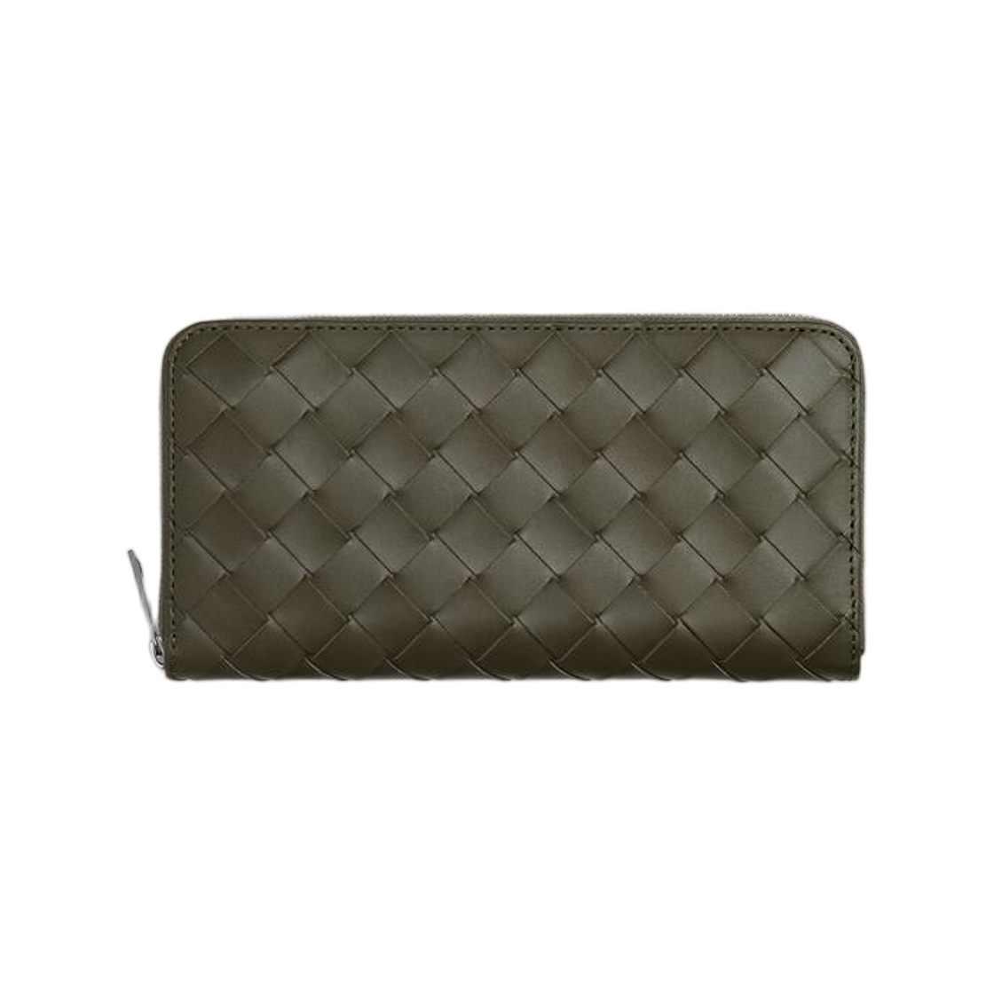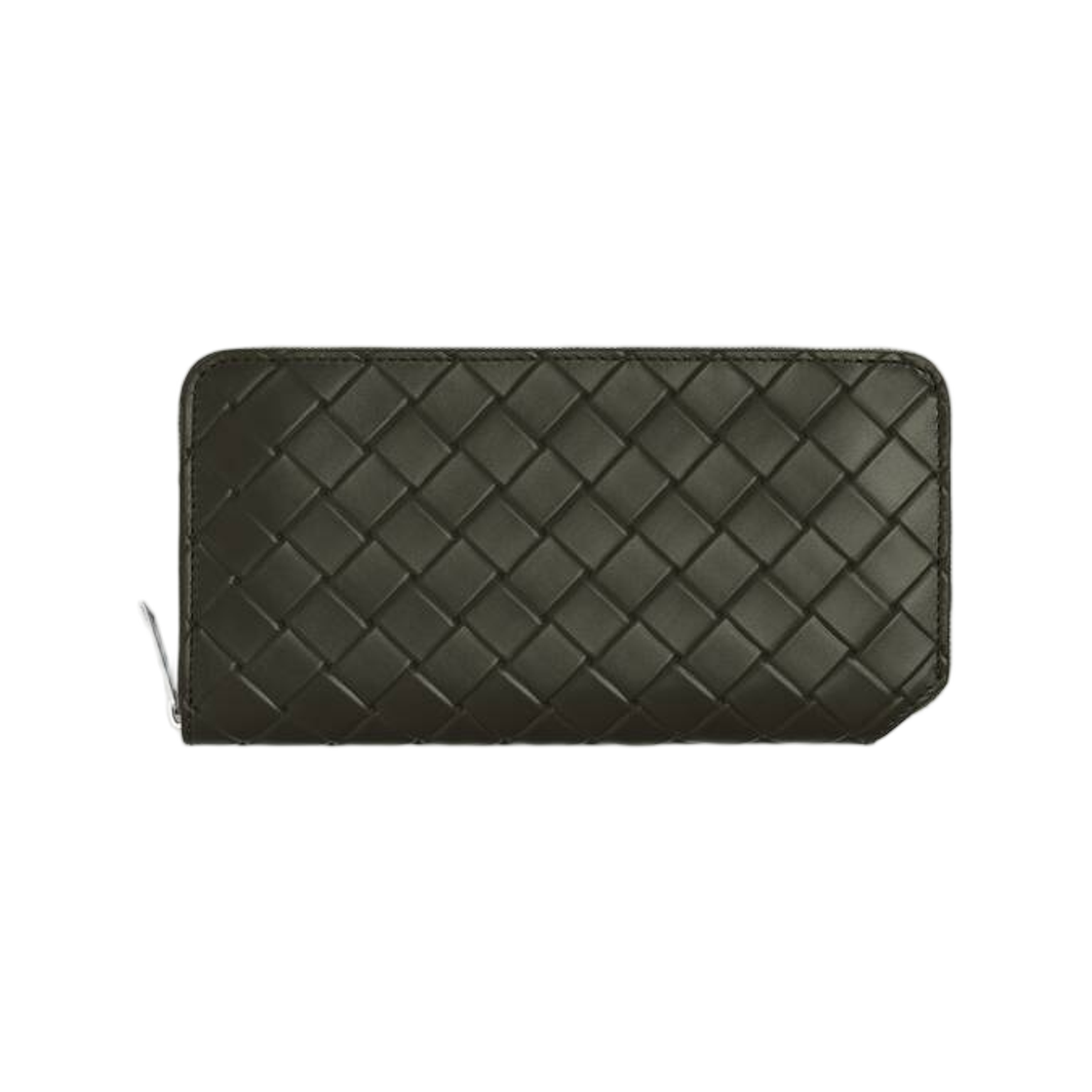 보테가 베네타 인트레치아토 피콜로 집 어라운드 월렛 다크 그린