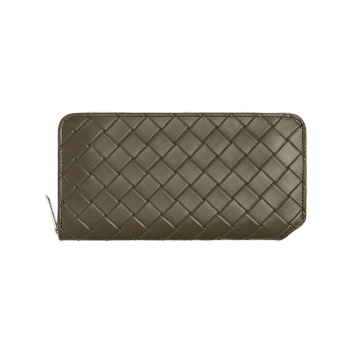 보테가 베네타 인트레치아토 스탬프 집 어라운드 월렛 사이프러스