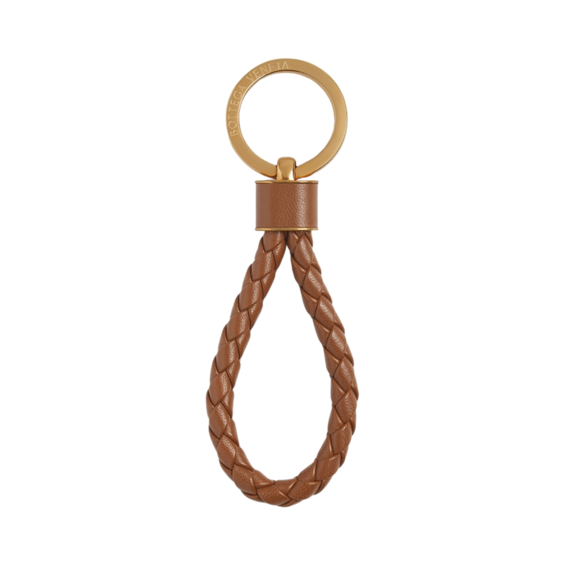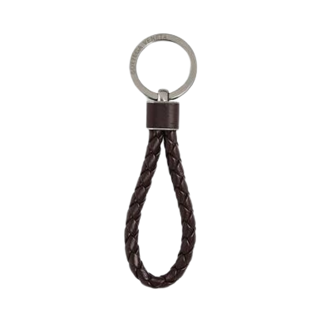 보테가 베네타 인트레치아토 로고 키링 브라운