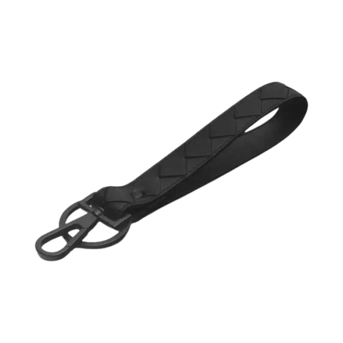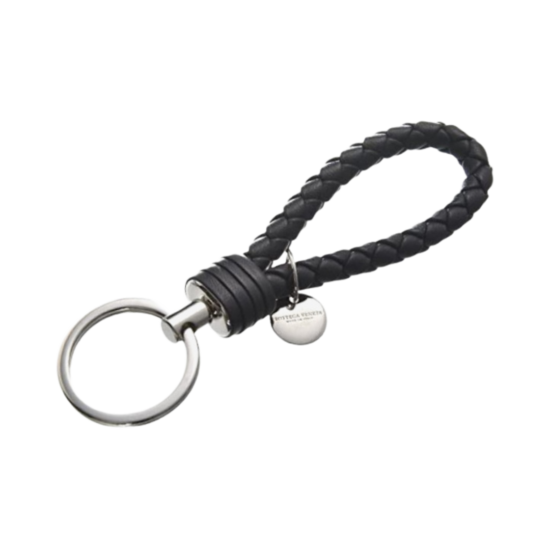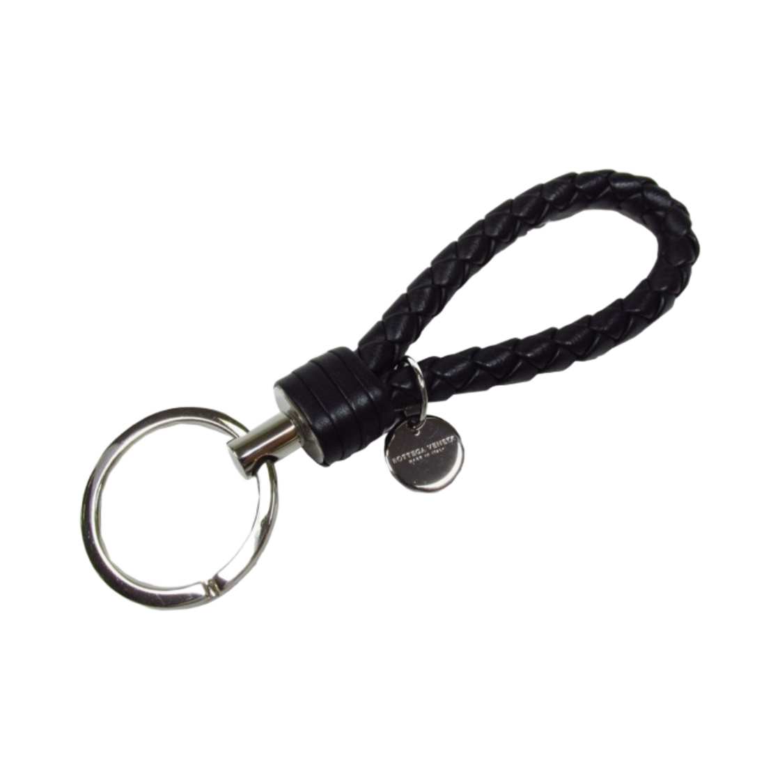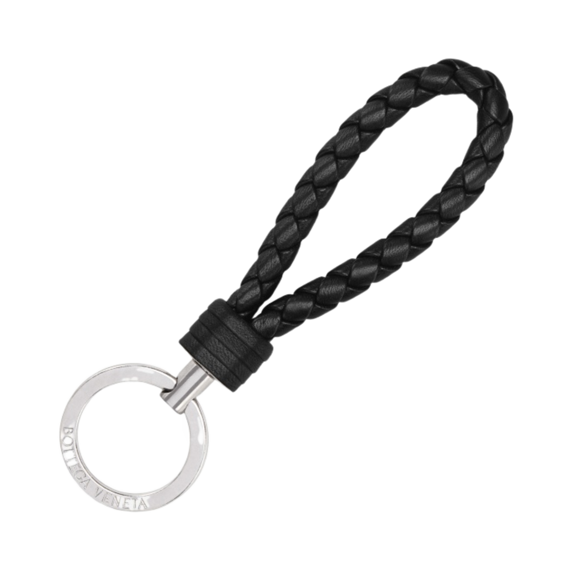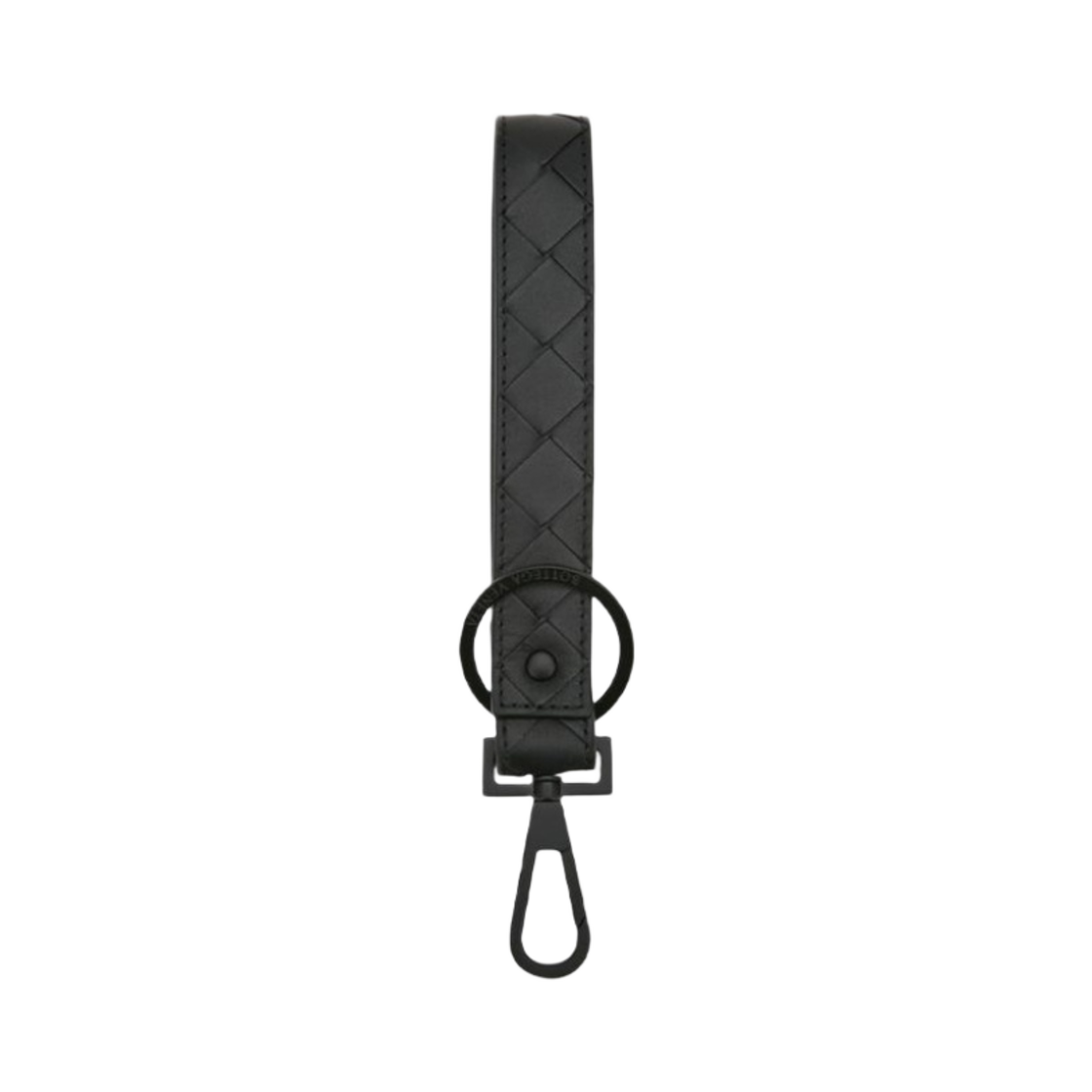 보테가 베네타 인트레치아토 레더 스트랩 키링 블랙