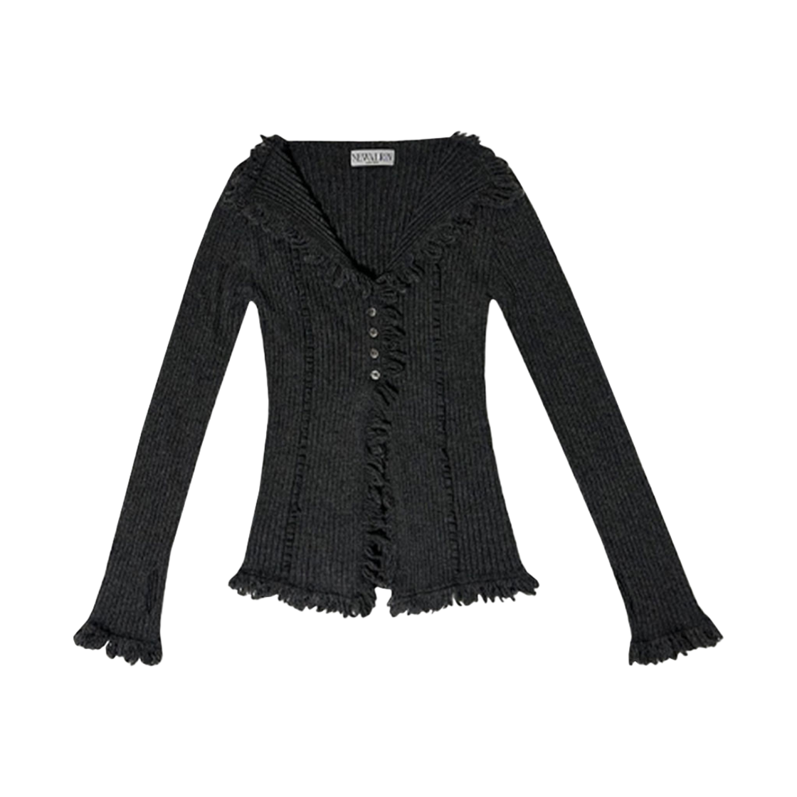 뉴얼린 보헤미안 테슬 라인 니트 가디건 멜란지 차콜