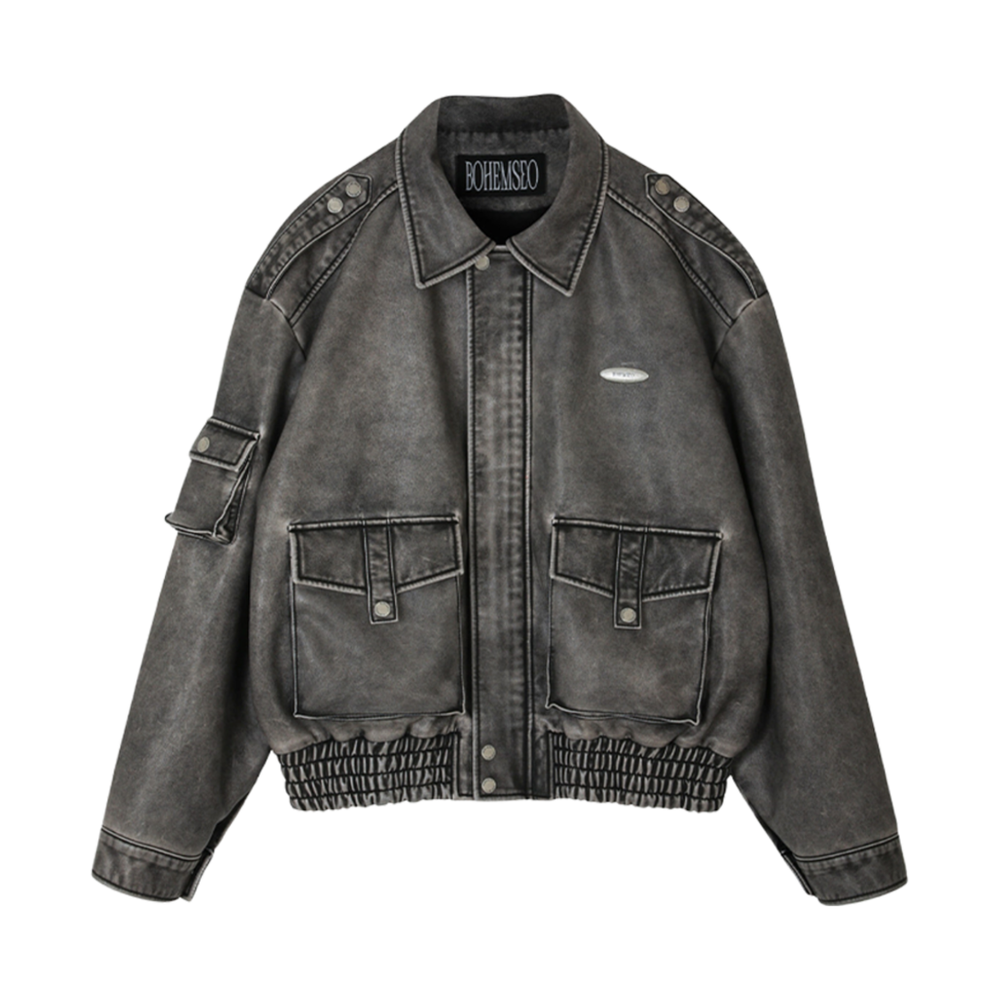 (W) 보헤미안 서울 레더 봄버 점퍼 워시드 그레이
