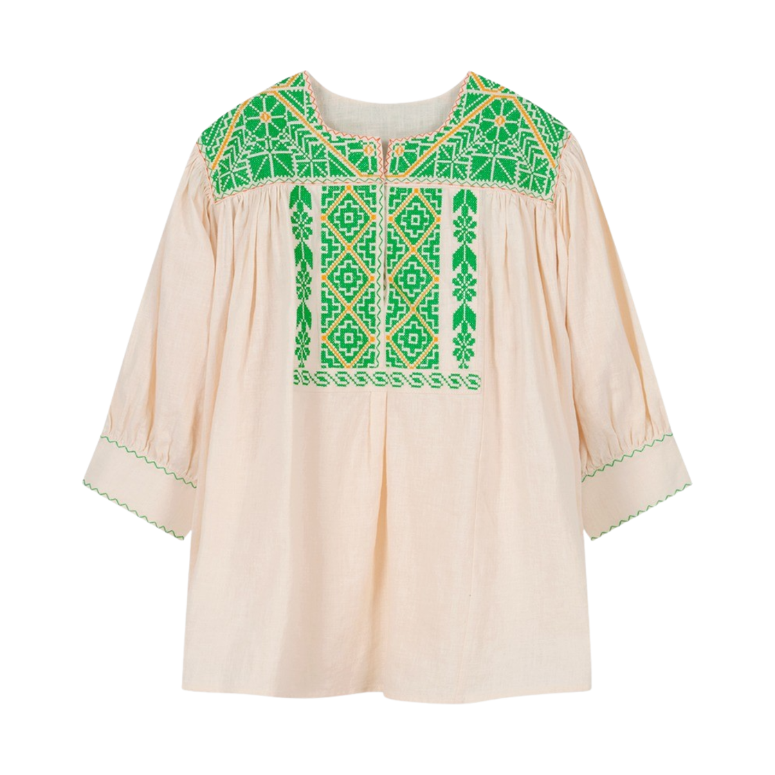 그린 버터 우먼 보헤미안 니들워크 린넨 블라우스 그린