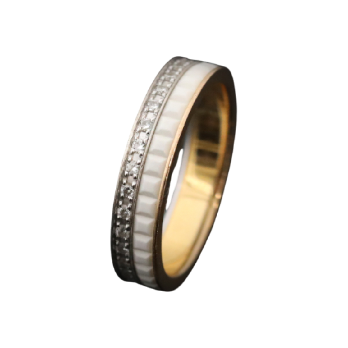 부쉐론 콰트로 화이트 에디션 웨딩 밴드 18K 핑크 골드 화이트 세라믹