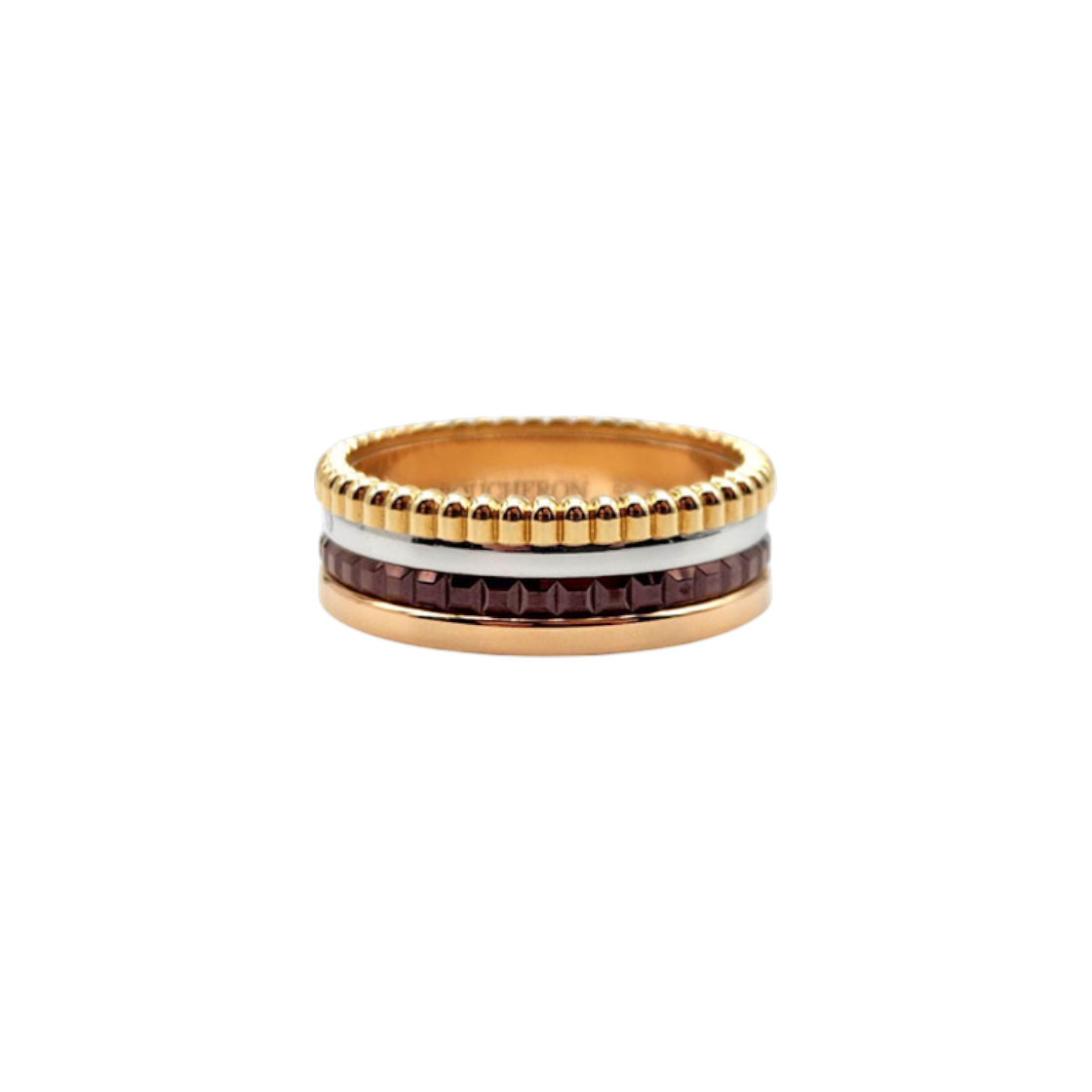 부쉐론 콰트로 화이트 에디션 라지 링 50호 18K 옐로우/화이트/핑크골드 다이아몬드(6ET0334)
