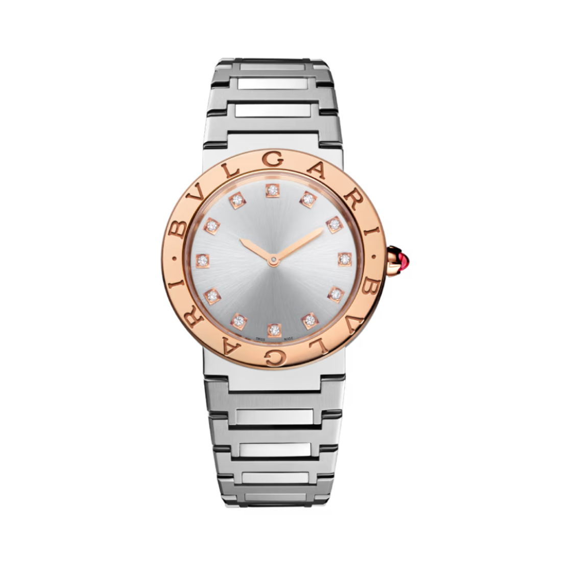 (W) 불가리 불가리 쿼츠 33mm 워치 스테인리스 스틸 로즈 골드 실버 다이아몬드