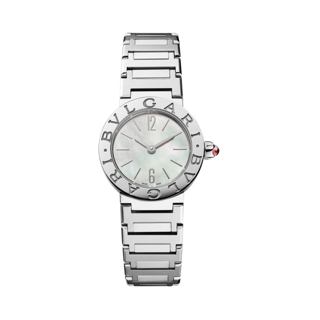 (W) 불가리 루체아 쿼츠 28mm 워치 스테인리스 스틸 화이트 마더 오브 펄 다이아몬드