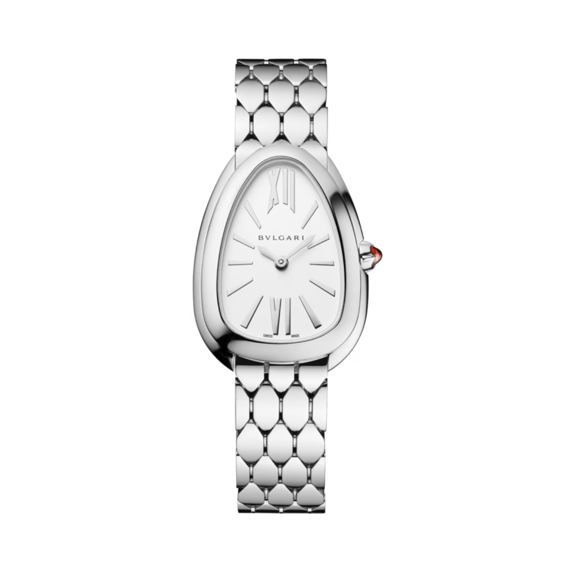 (W) 불가리 세르펜티 세두토리 쿼츠 33mm 워치 스테인리스 스틸 화이트 실버 오팔린 다이아몬드