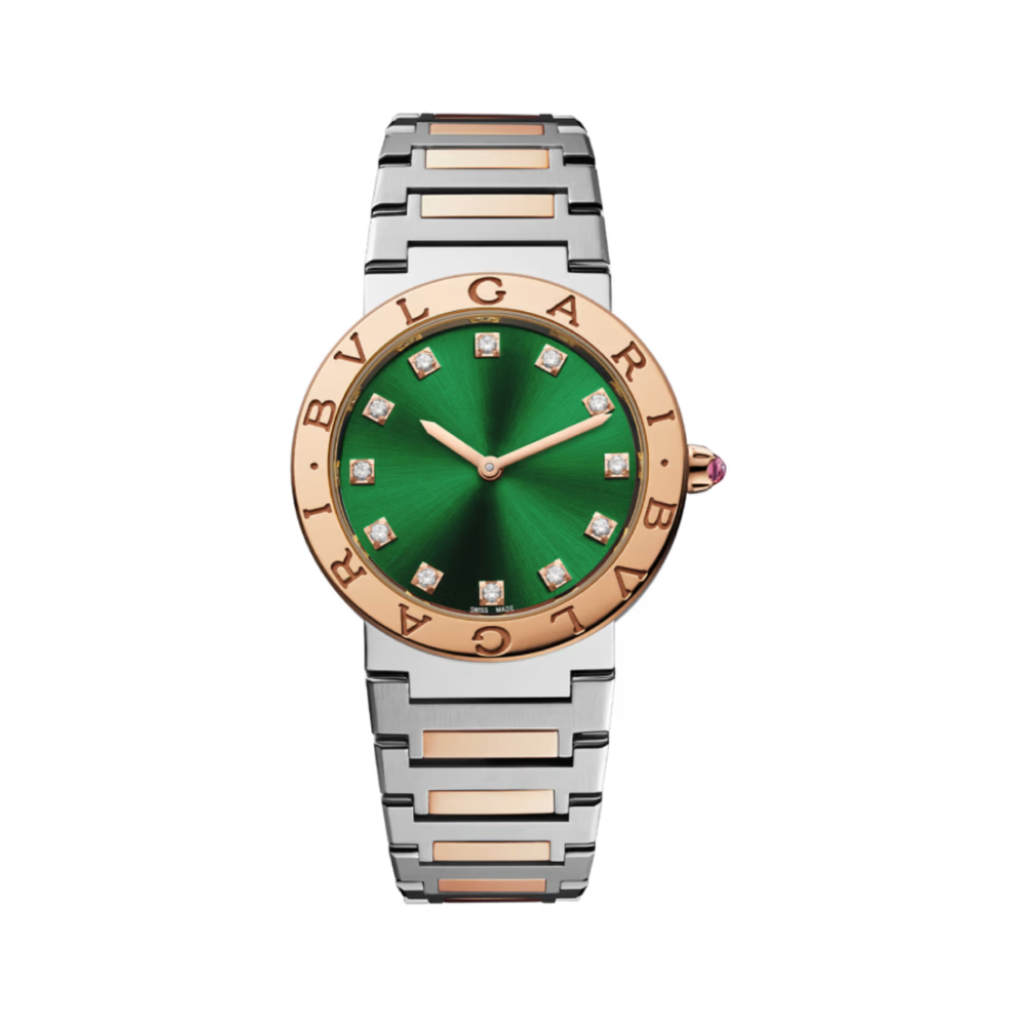 (W) 불가리 불가리 쿼츠 33mm 워치 스테인리스 스틸 로즈 골드 그린 다이아몬드