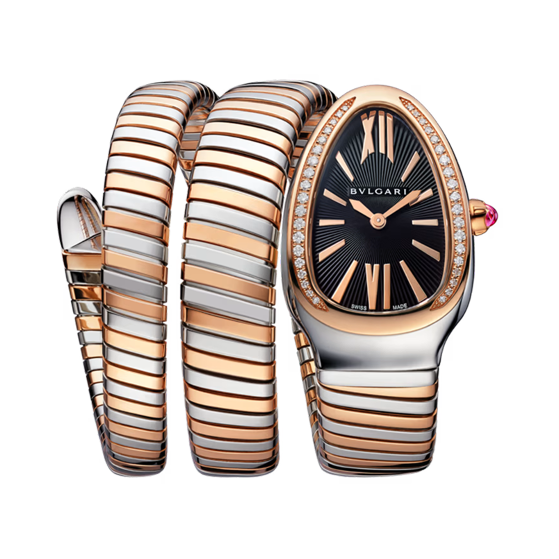 (W) 불가리 세르펜티 투보가스 쿼츠 35mm 워치 스테인리스 스틸 로즈 골드 블랙 오팔린 다이아몬드